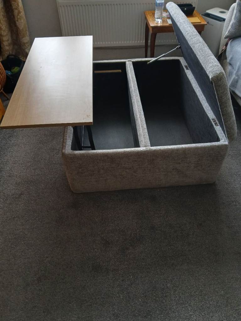 Bought from next 18 months ago,in new condition. Measures 100 x86 x37 cms.Paid £350 when new. Both tops open for extra storage. Can be used as a table for tv meals etc,fabric is grey. First to view will buy . Selling due to change in circumstances,buyer to collect. Thanks for reading.