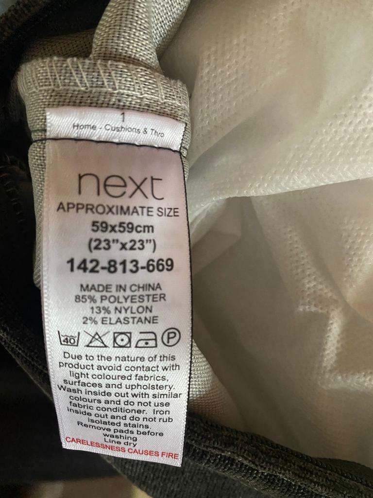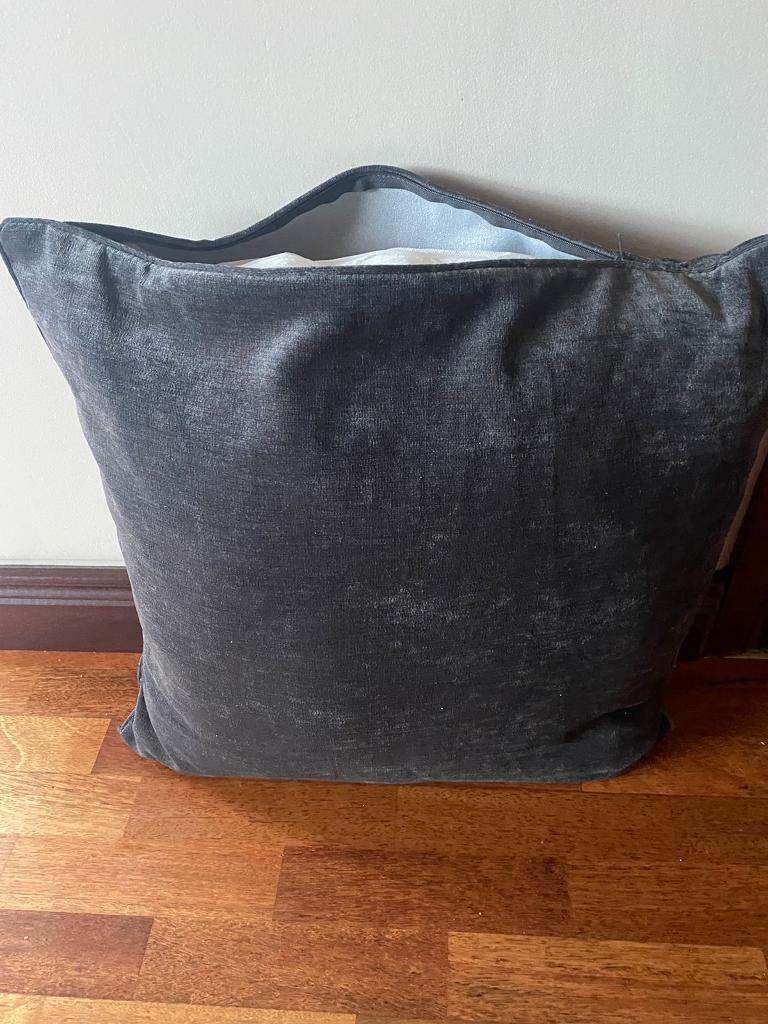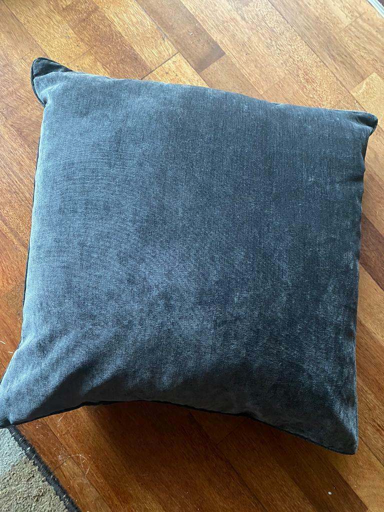 Large charcoal grey cushion from NEXT HOME. Velour. Measurements in label as per pic. Bought Xmas 2021 doesn’t match sofa. No tags but brand new never used. Removable cover for washing. Was £20 bought new