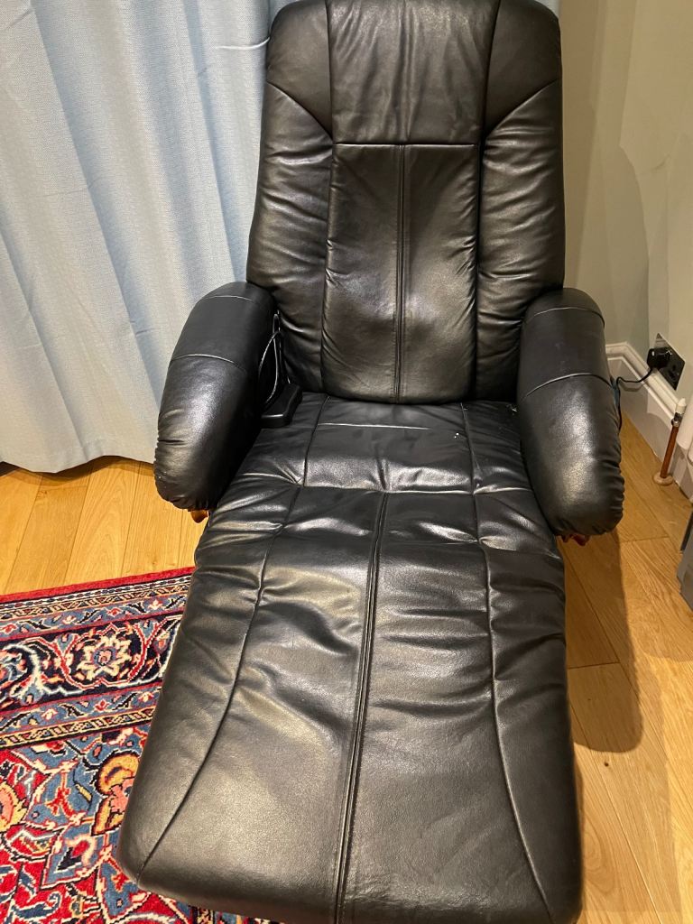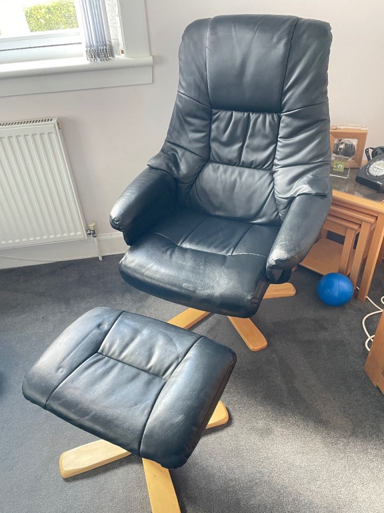 Posting for 9+ yearsLeather recliner chair and foot stool