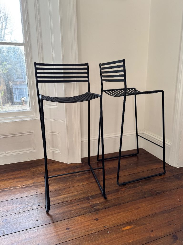 Black Matt painted pair of lovely metal bar stools