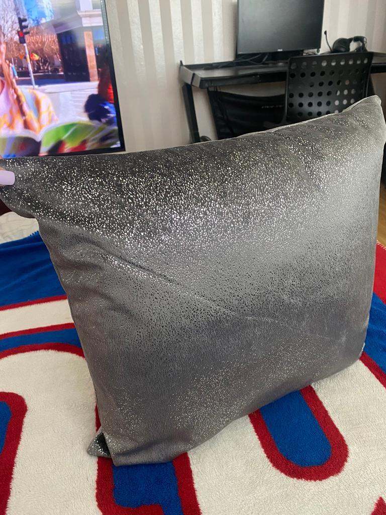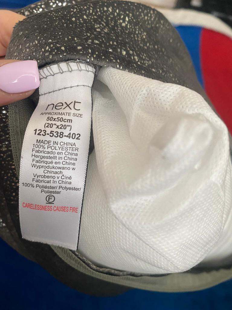 Cushion from NEXT. Brand new no tag. Grey velour with silver flecks all over. Sparkles when lights hit it. Removable cover can be washed.