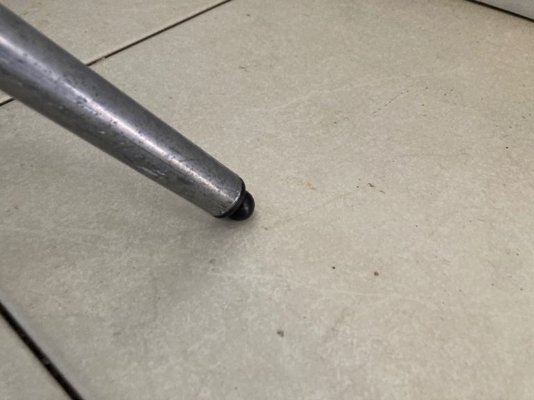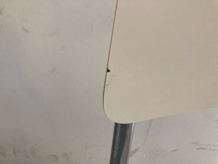 Simple to fold up, easy to stow away. This bar stool in fresh white is always at hand when you need a few extra seats around the bar table, countertop or kitchen island. One leg cover is missing but it doesn’t affect stability. Collection near Kensal Green station.