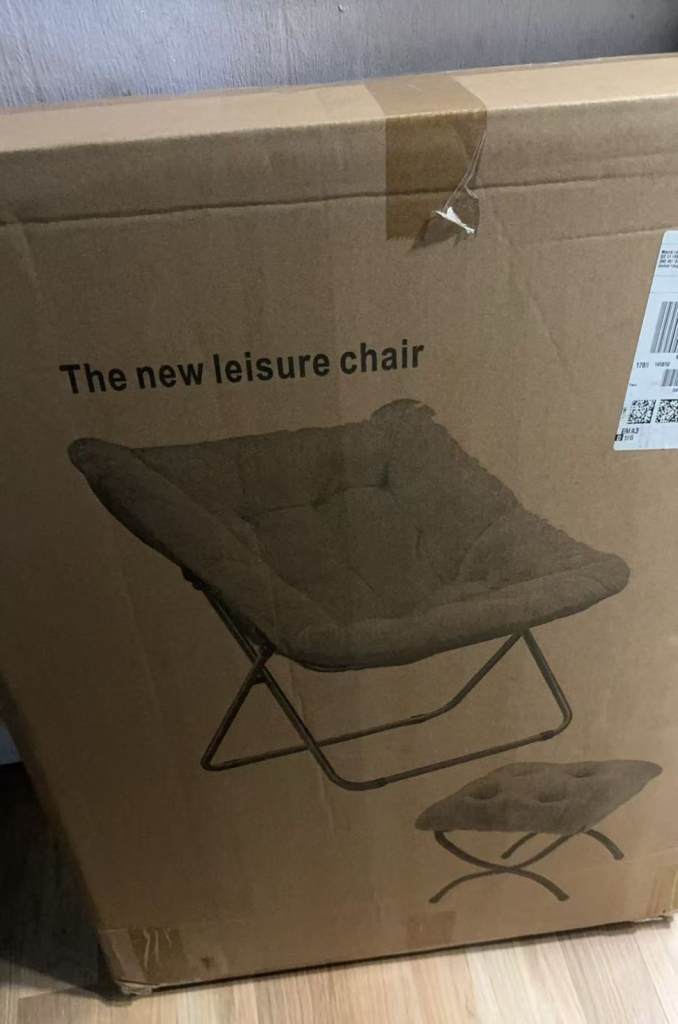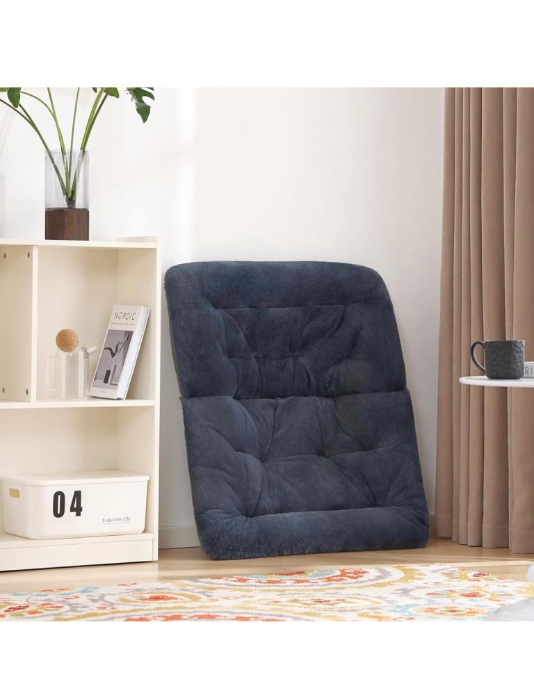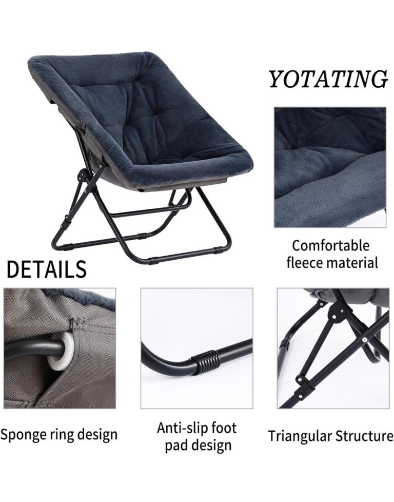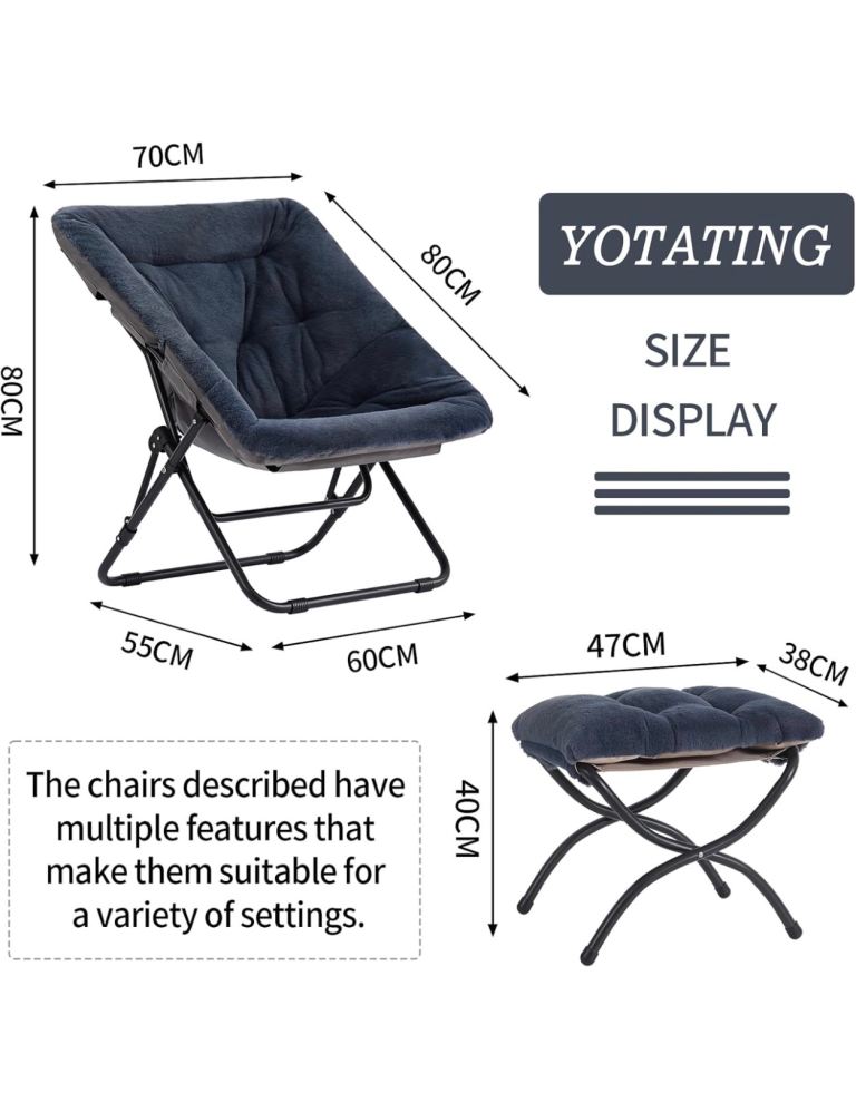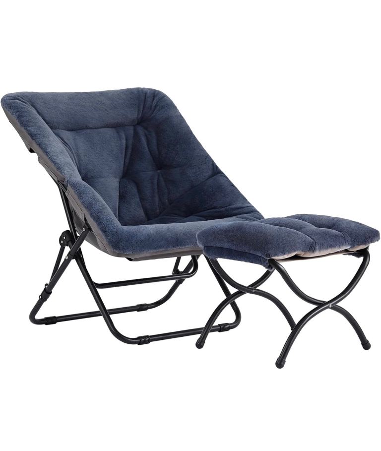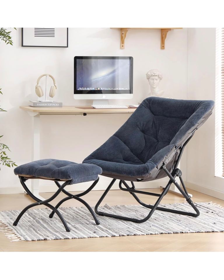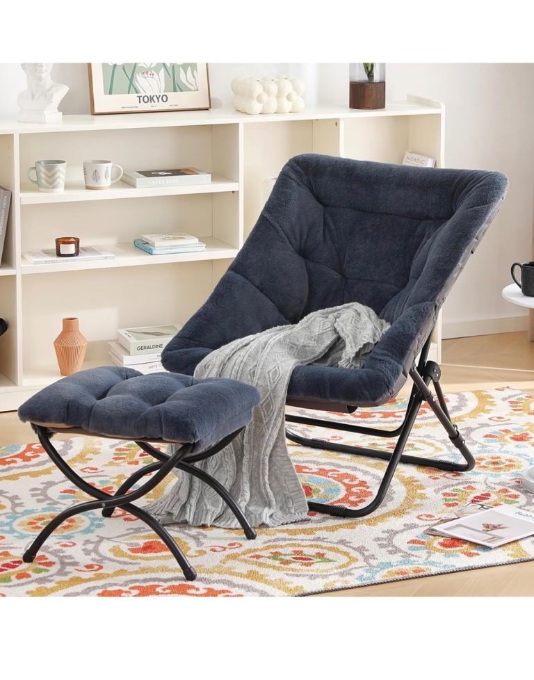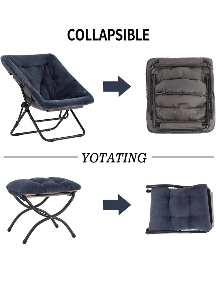 Saucer Chair With Ottoman, Comfy Faux Fur Oversized Folding Soft Furry Lounge Lazy Moon Accent Chair for Bedroom, Living Room, Dorm Rooms, Navy
