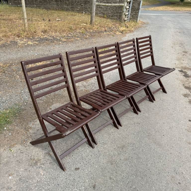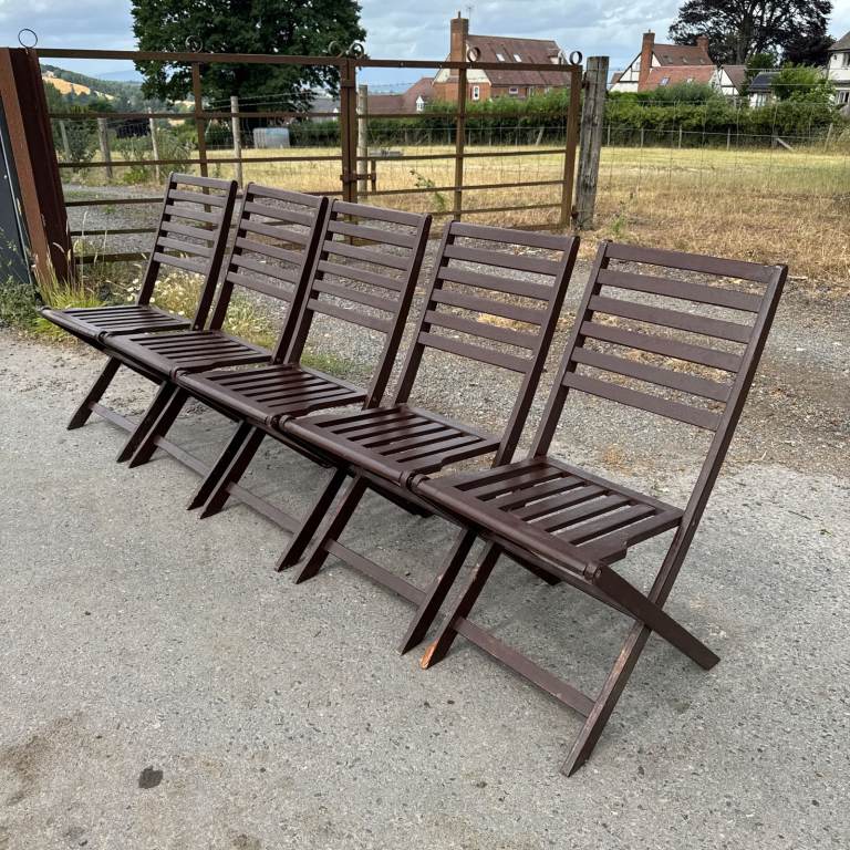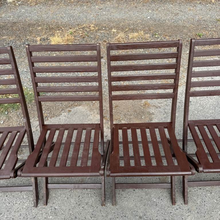 Teak Garden Chairs Folding Set Of 4 Brown Painted Patio Seating Outdoor Cafe Pub