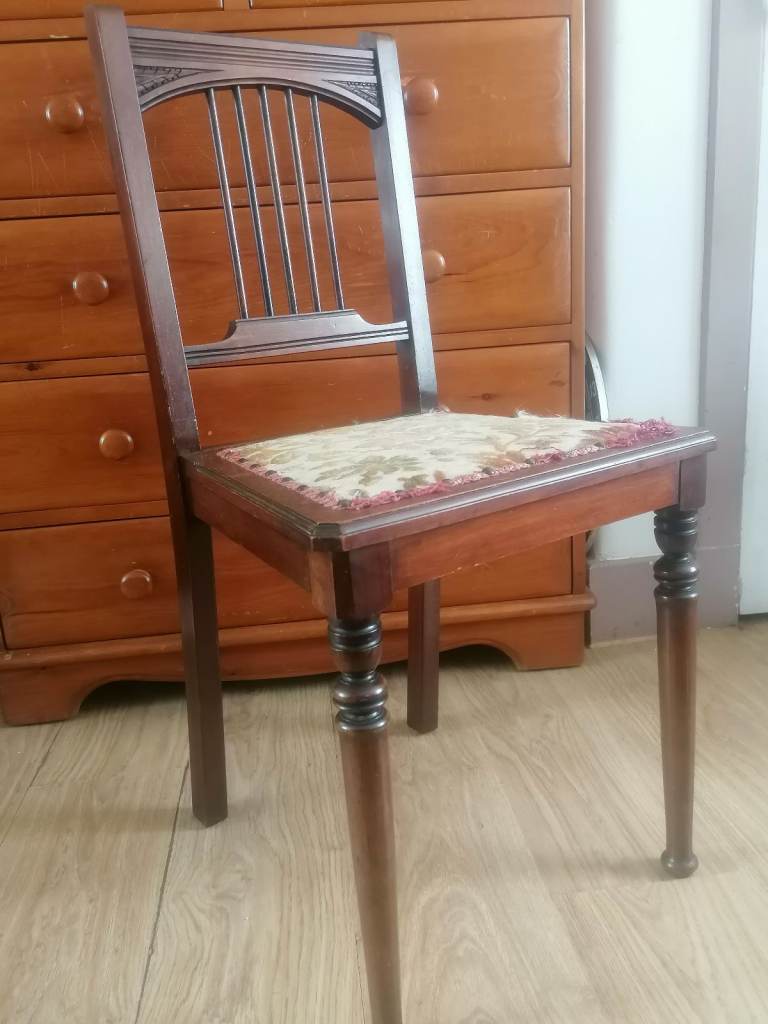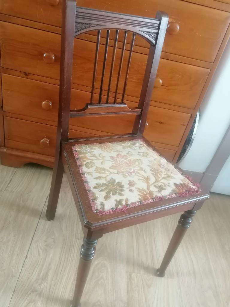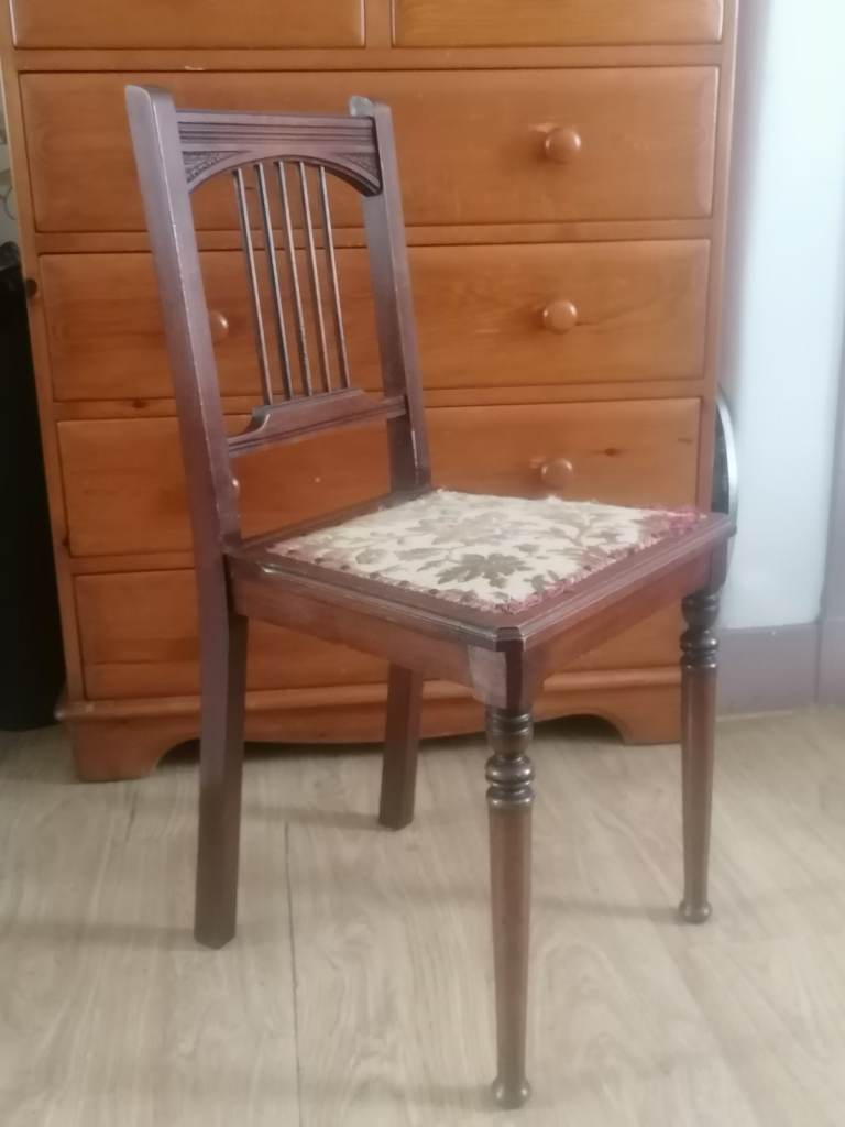 Vintage, (1 chair)Antique Edwardian Single Upholstered Wooden Chair Dining Bedroom.. As seen.