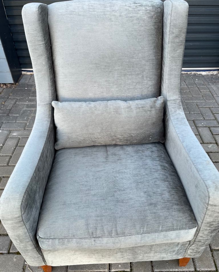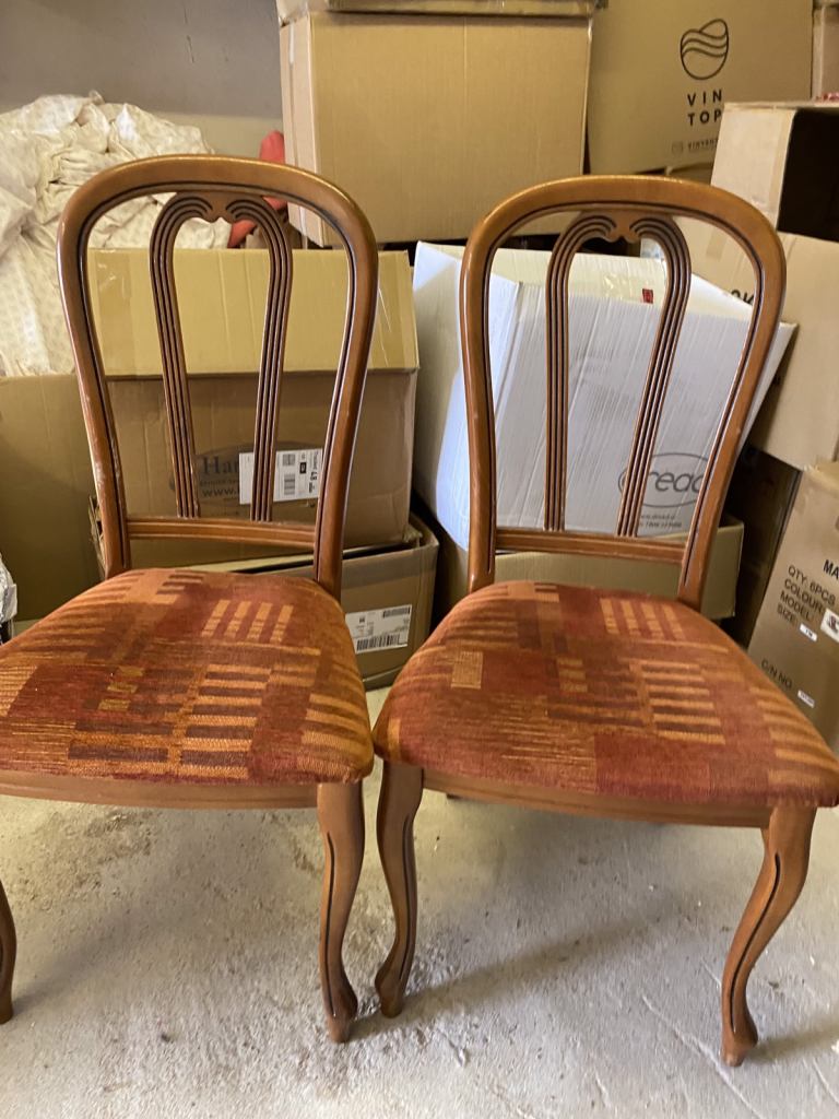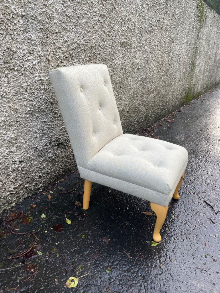 Vintage bedroom / nursing chair upholstered in yellow and blue mix wool. cm w x cm high seat height cm x cm deep.