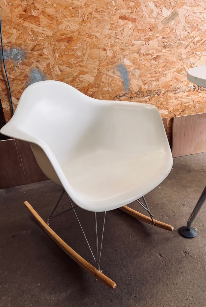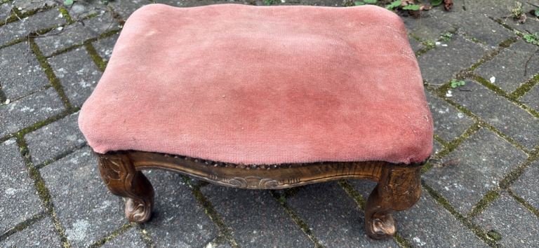 Vintage bedroom / nursing chair upholstered in yellow and blue mix wool