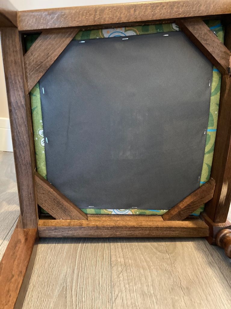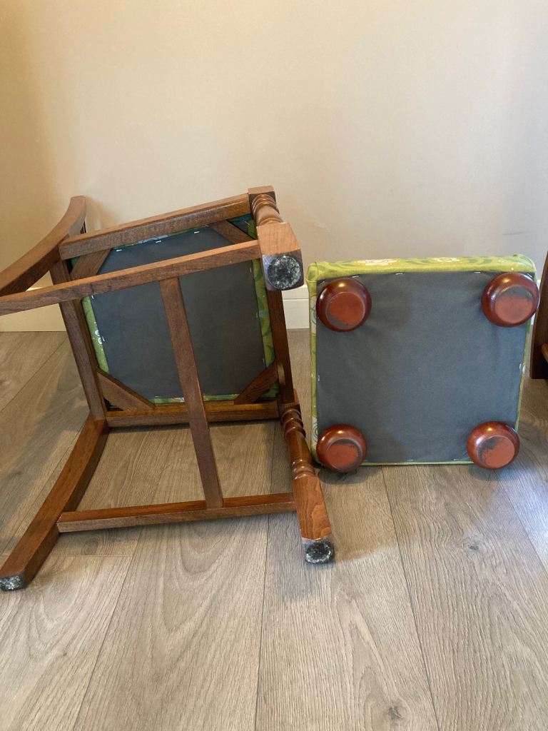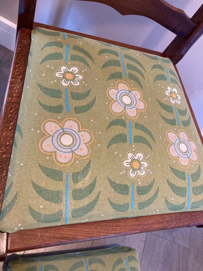 Both upholstered in retro print fabric