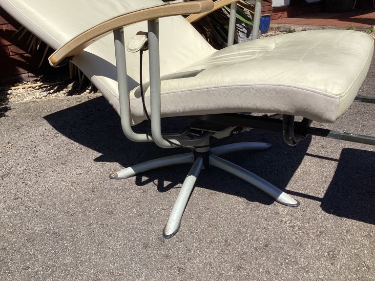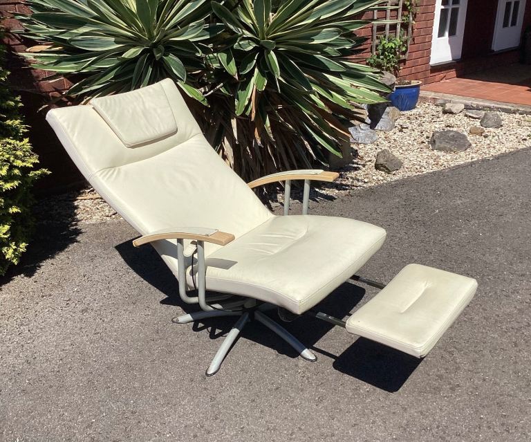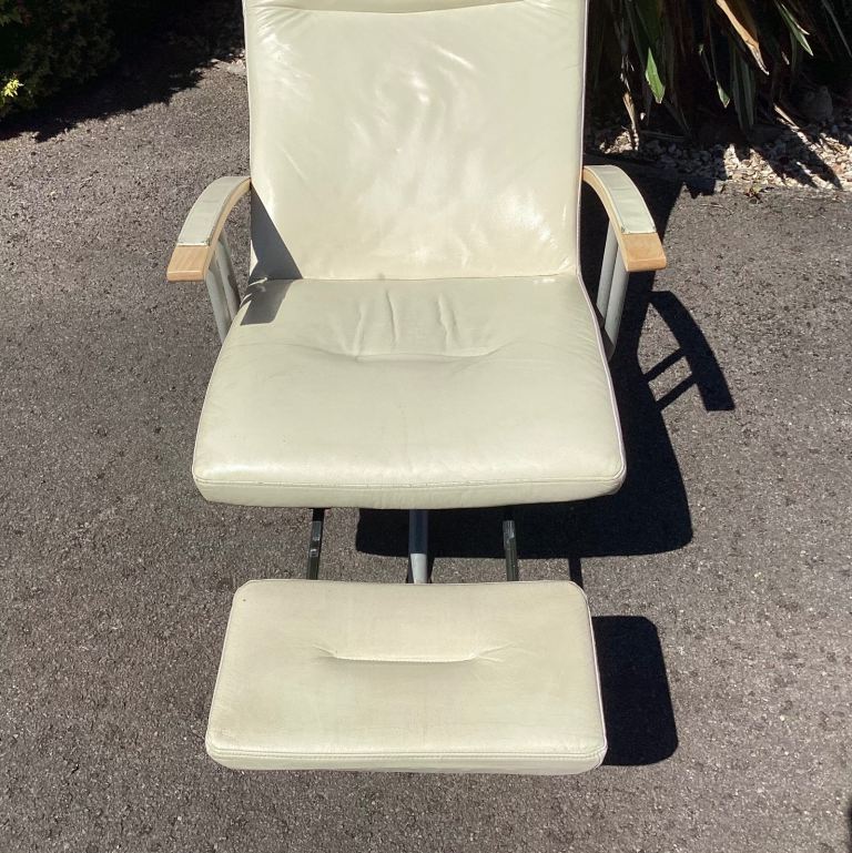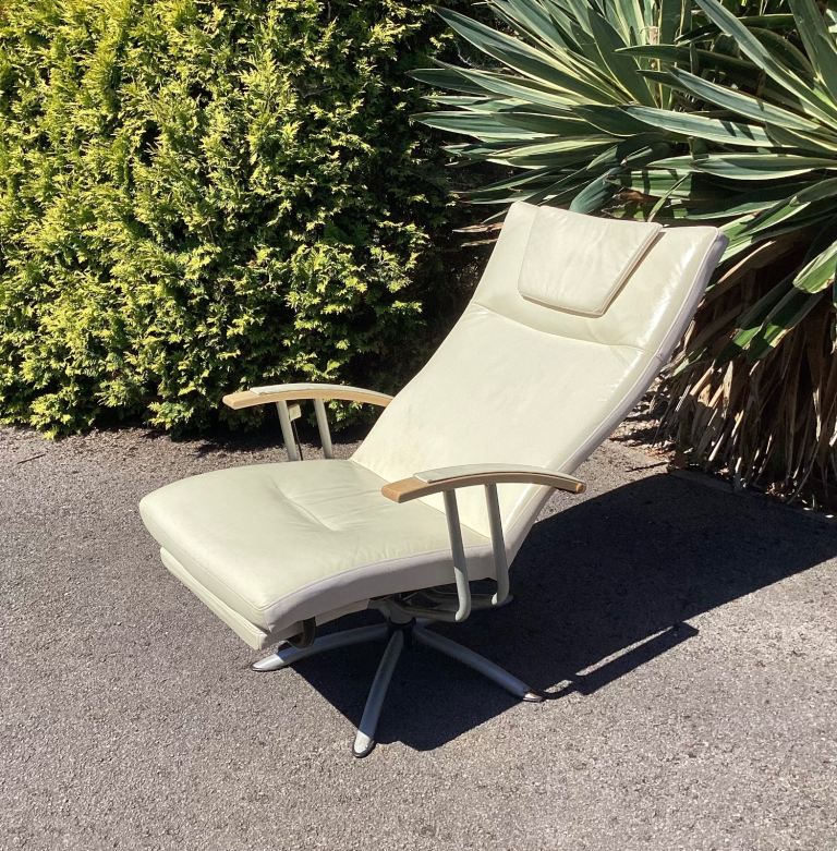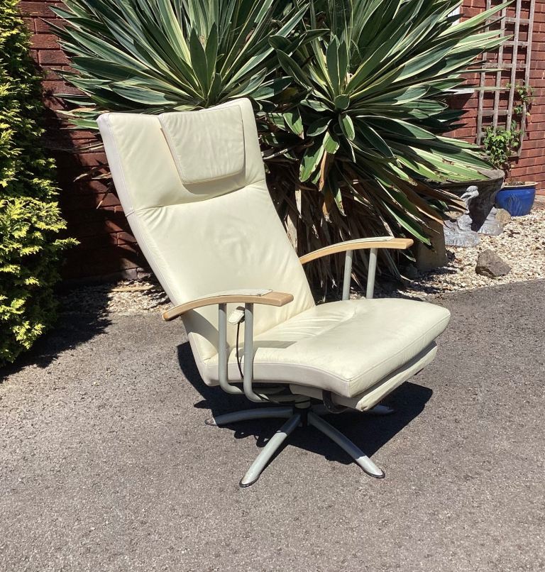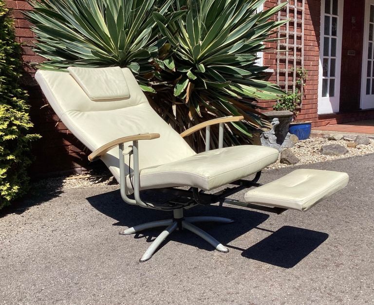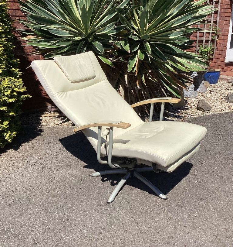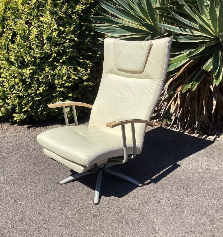 Vintage Swedish Joker Z Halse Swivel Reclining Reclining Chair with Built-in Footstool