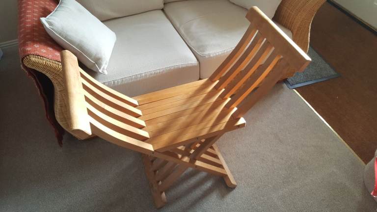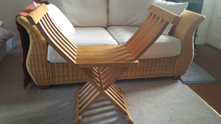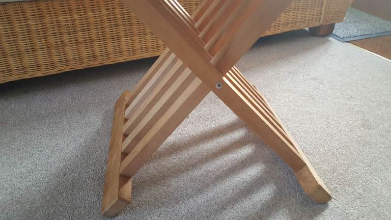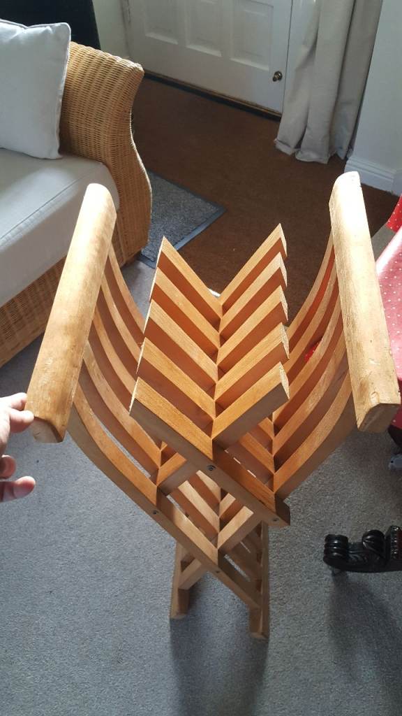 Vintage Wooden Scissor folding chair in excellent condition. Foldable so packs up neatly for storage. Made from high quality wood with great craftsmanship. Is sturdy and quite a unique piece, inspired by Roman/Viking historical chairs.