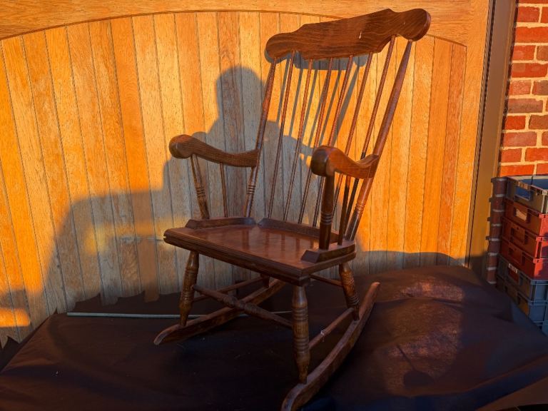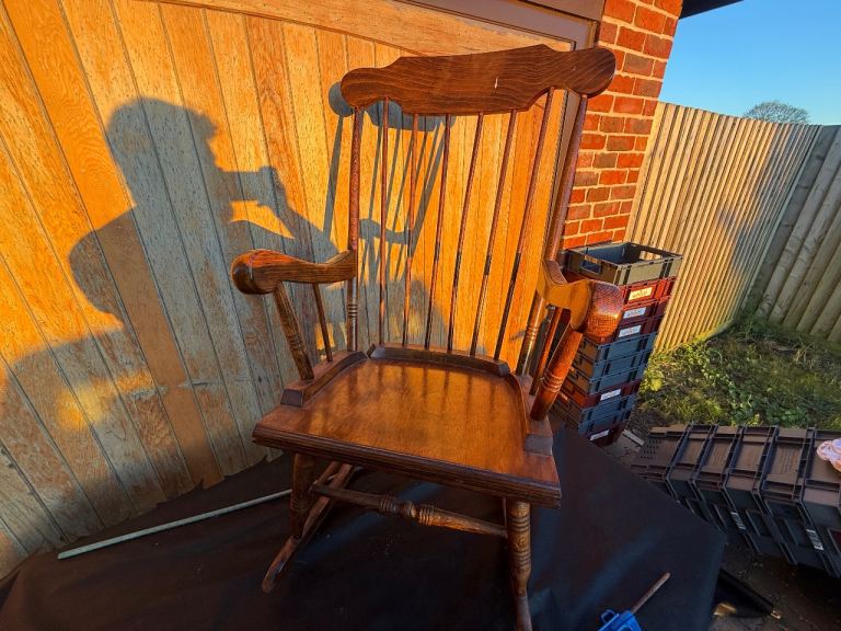 Vintage Wooden Rocking Chair – Solid Wood Spindle Back – Great Condition