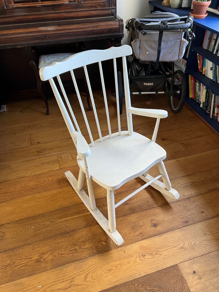 White rocking chair. It could do with a sand down and repaint. Otherwise sturdy with no weakening joints.