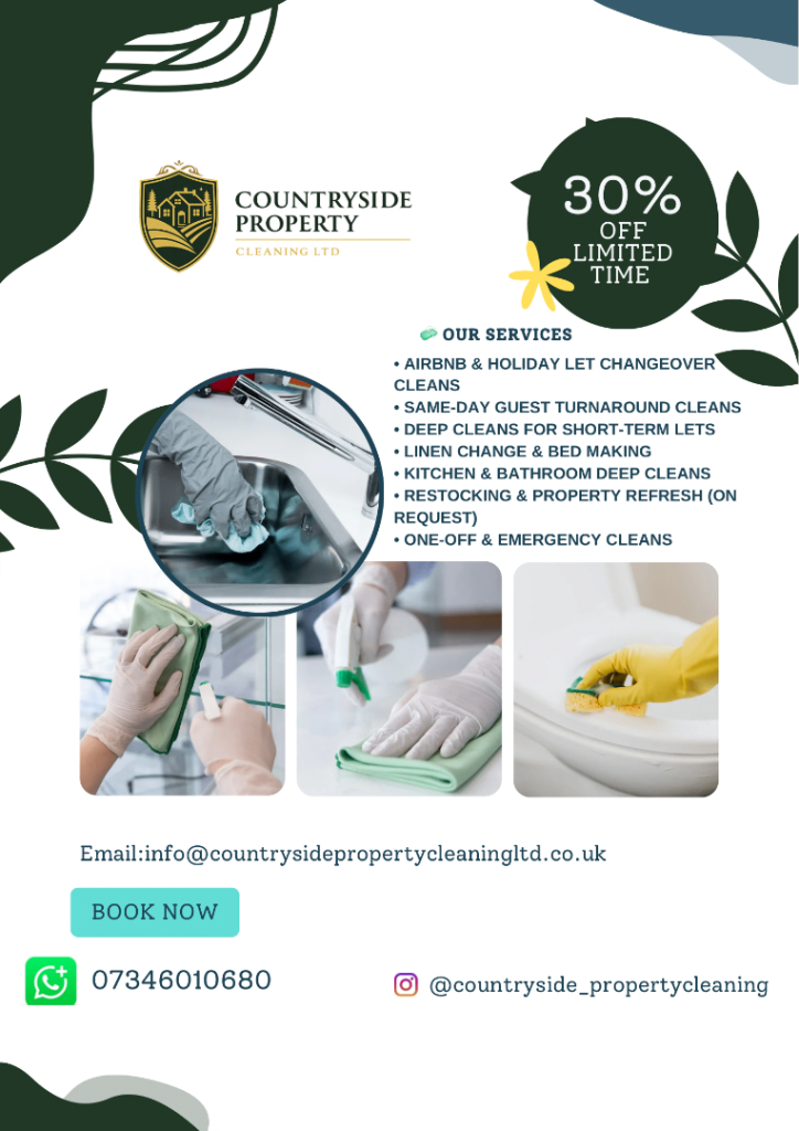 Countryside Property Cleaning provides professional Airbnb & short-term rental cleaning across Southampton and surrounding areas.