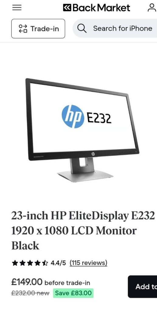 * FREE DELIVERY 23-inch HP EliteDisplay E232 1920 x 1080 LCD Monitor Black PC COMPUTER