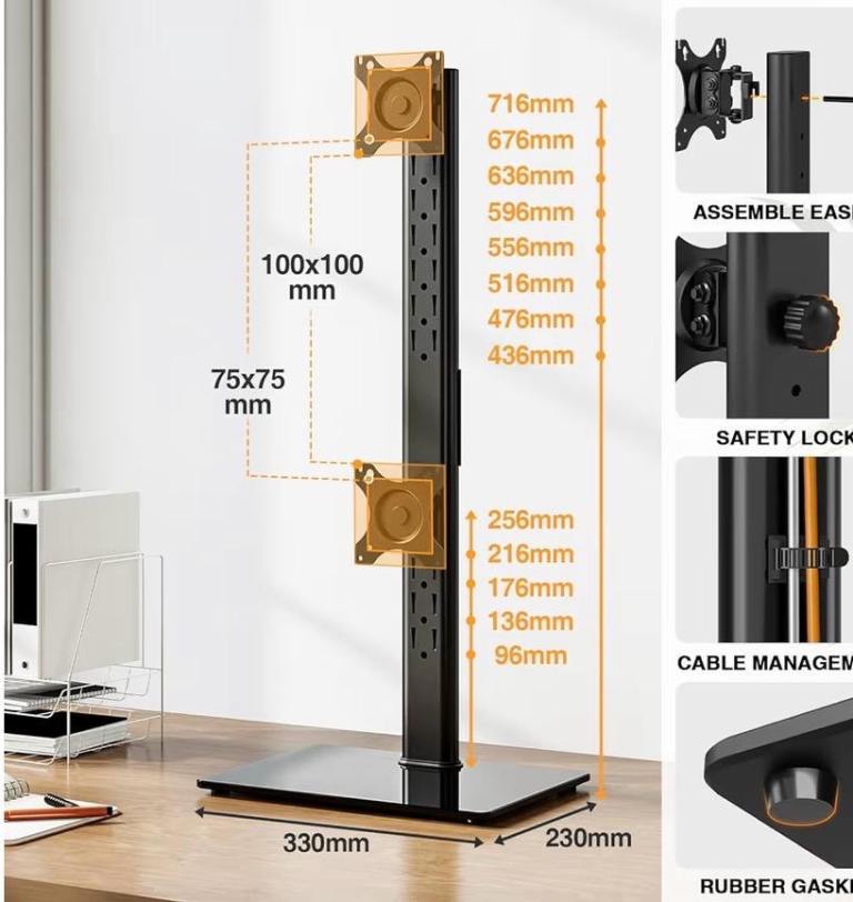 5Rcom Dual Monitor Stand for 13-38 Inch Screens, Vertical Monitor Stand for Desk, Rotation & Swivel Arms, Height Adjustable 2 Mount Stand with VESA 75x75/100x100mm up to 20KG £25