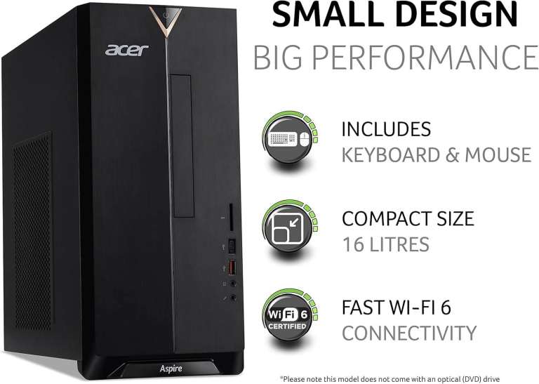 Acer Aspire TC-1660 Desktop PC - (Intel Core i7-11700, 8GB, 2TB HDD, Wireless Keyboard and Mouse, Windows 11