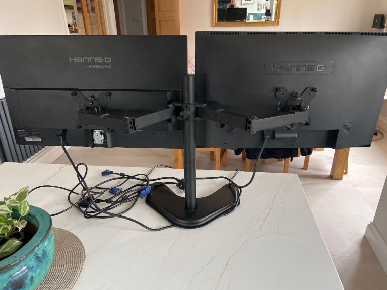 Two 600 mm 24 inch Hanns-g monitors and flexi stand