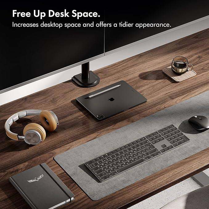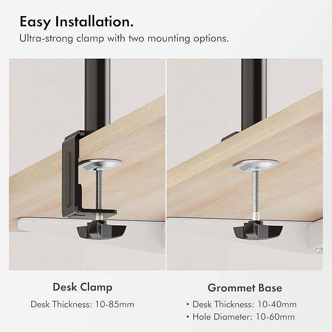 SPACE-SAVING WORK FROM HOME SET UP: Save valuable desktop space with your VonHaus twin arm monitor mount, perfect for increasing productivity whilst leaving room on your desk to organise files.