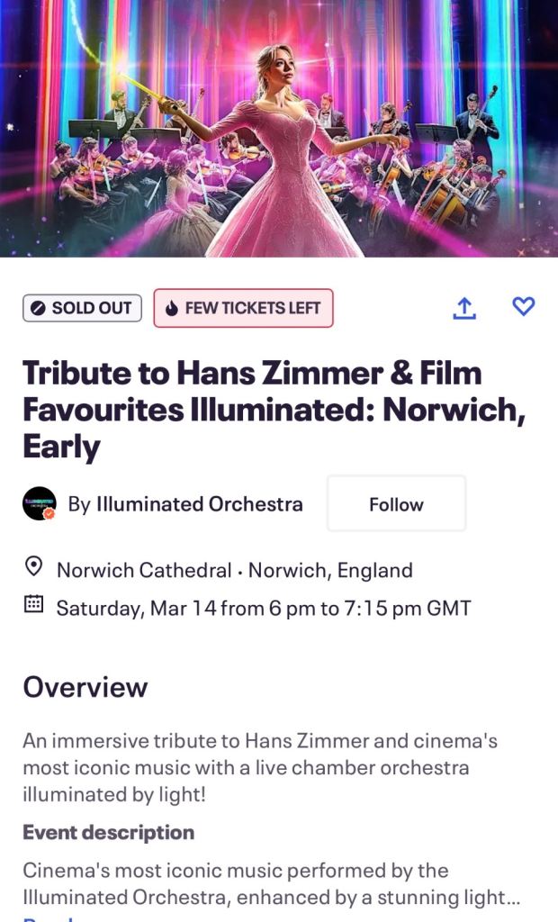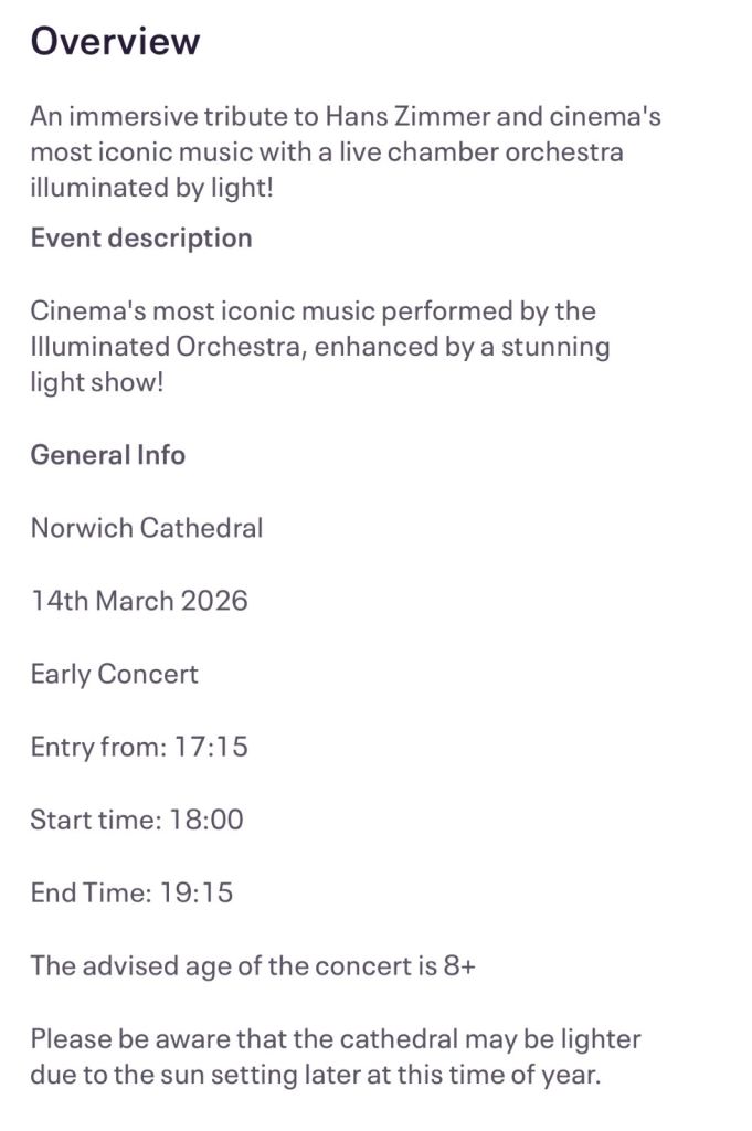 4 x VIP Tier 9 tickets for sold out performance at Norwich cathedral. All the big scores from