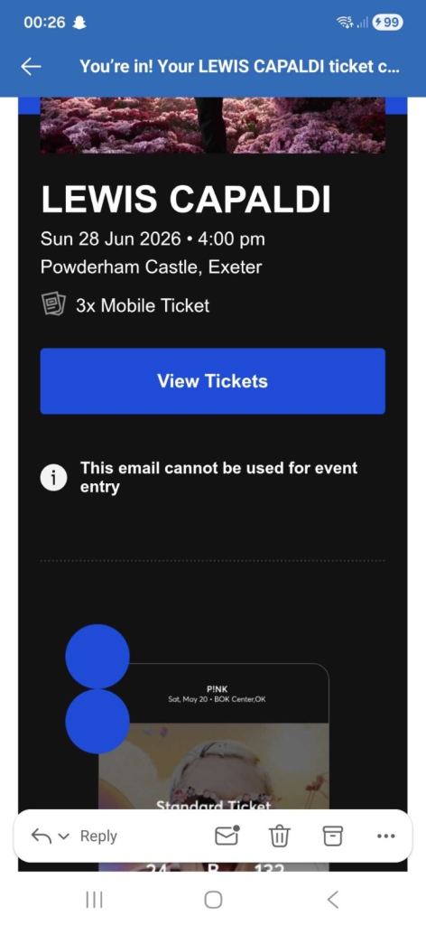Lewis Capaldi x3 Powerdam Castle, Exeter tickets