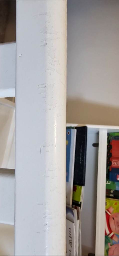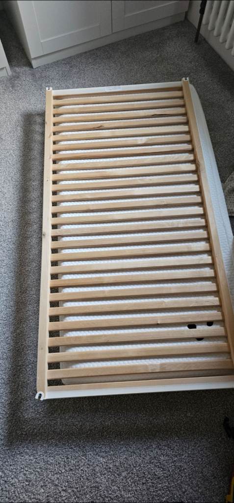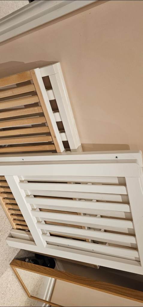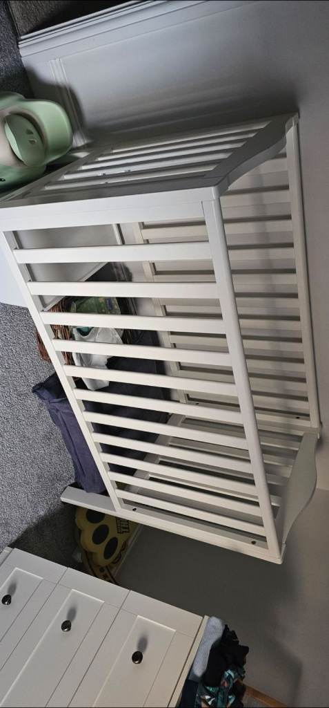Currently dismantled. Good used condition- not going to lie- there are marks on the wood and a little damage on base which can't be seen and doesn't affect use. Good price if on a budget and they soon move onto a bed. Collection only . No offers
