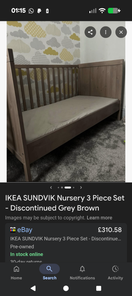 Like new childrens IKEA bed set. Goes from a cot to a child's bed. With wardrobes and changing unit. Like new.