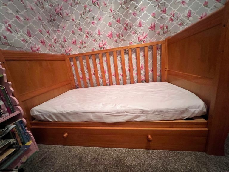 Also selling with a mattress complete with mattress cover it has only been used a handful of times and only selling as it is now not big enough