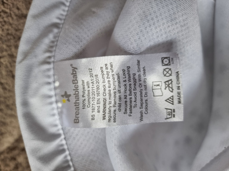 Grey Star Breathable cot bumpers. In good used condition. Buyer to collect from Trinity Fields in Stafford near J14 of the M6.