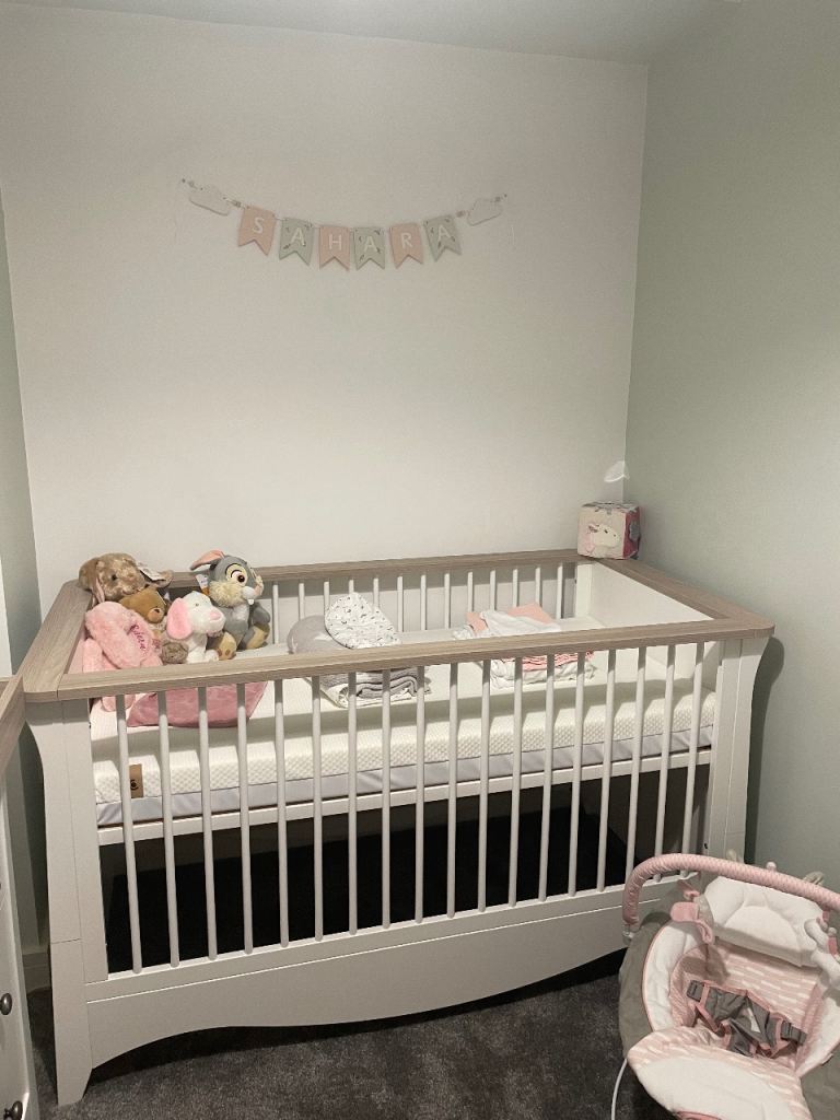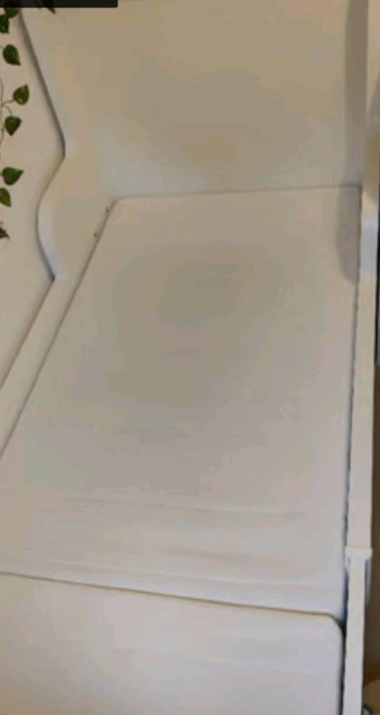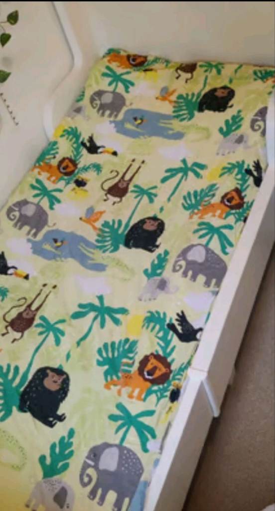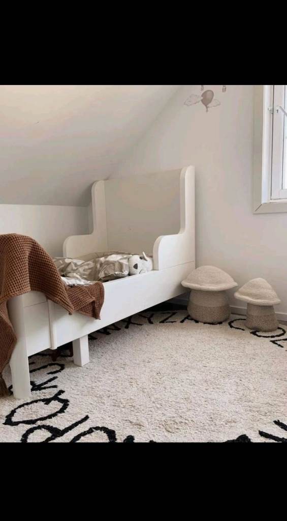 IKEA BUSUNGE extendable children’s bed in white.A beautiful bed and a perfect design for toddlers as it’s only low and supportive from both sides.