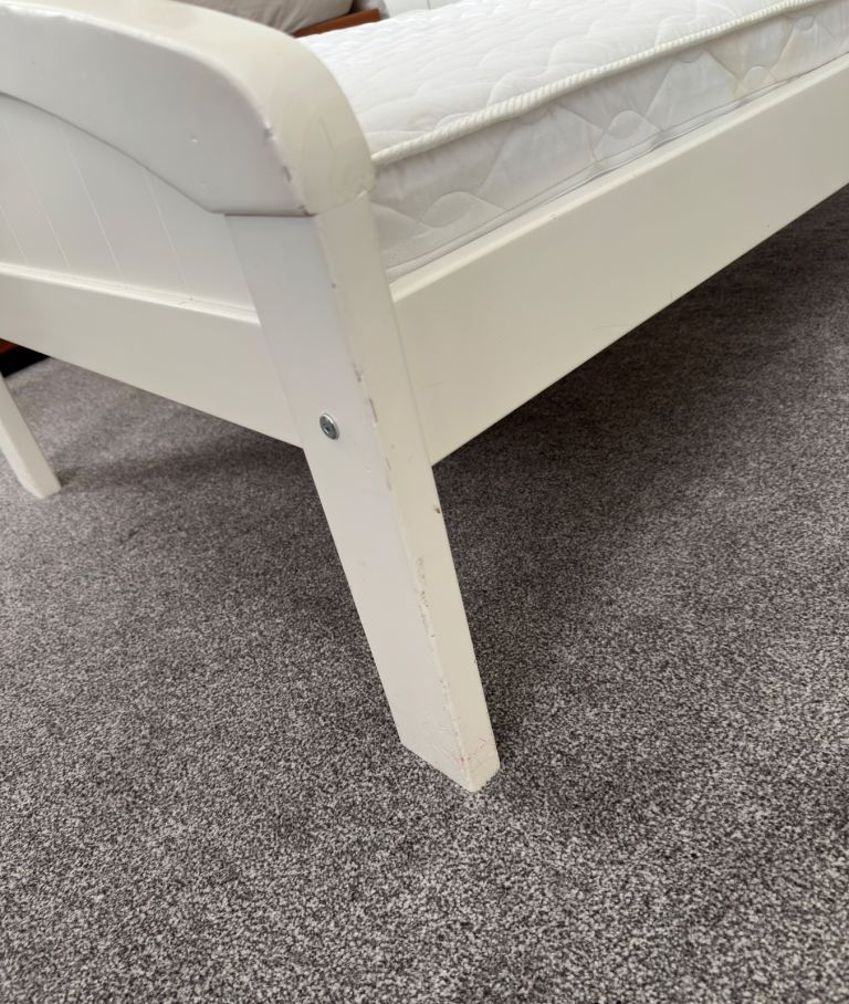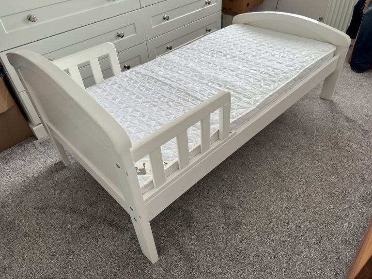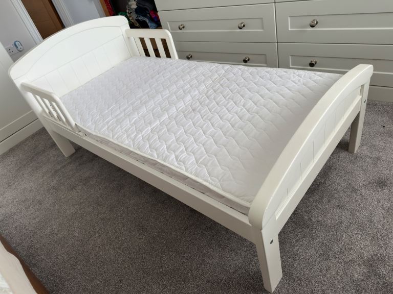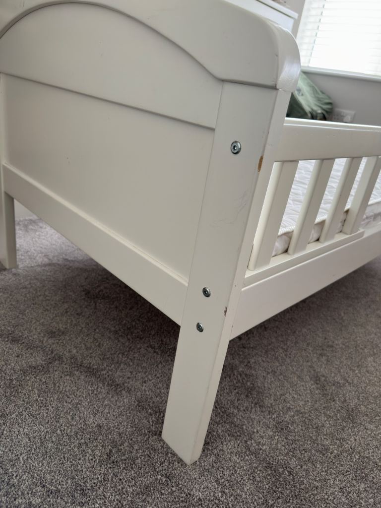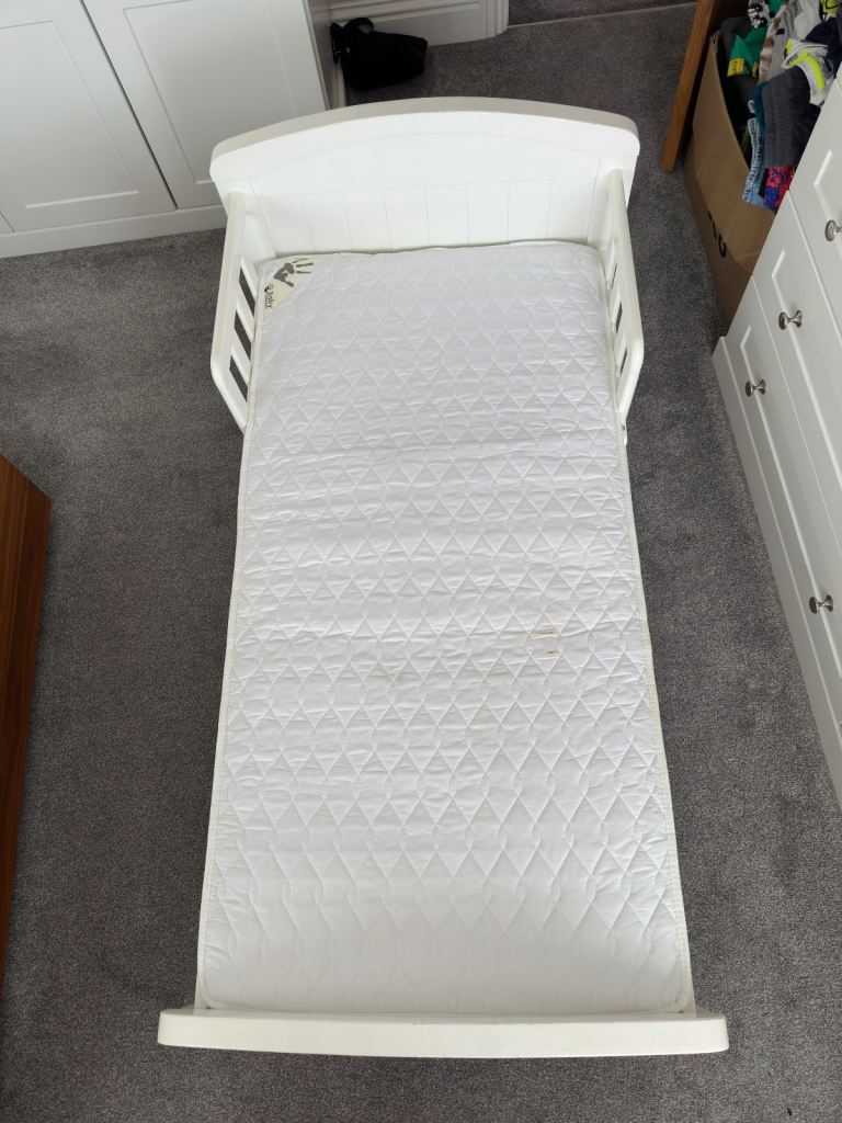 Posting for 13+ yearsKiddicare | Cot Bed | Country | Toddler | Antique White | Pine | with Mattress