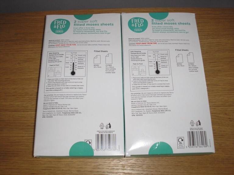 Brand new fitted Moses Sheets.Pack of 2 in Grey and Pack of 2 in Blue.Size 28cmx75cm.£5 for both.Collect from Alloa