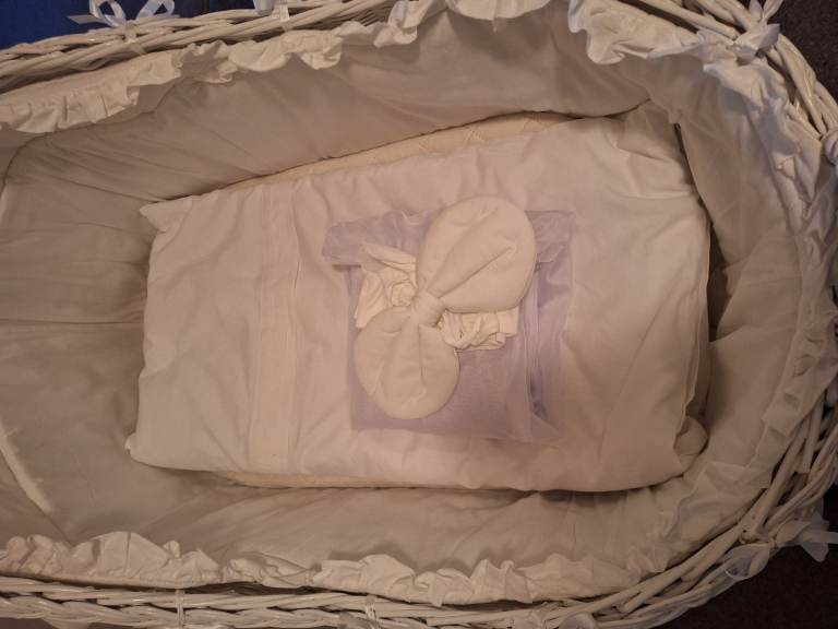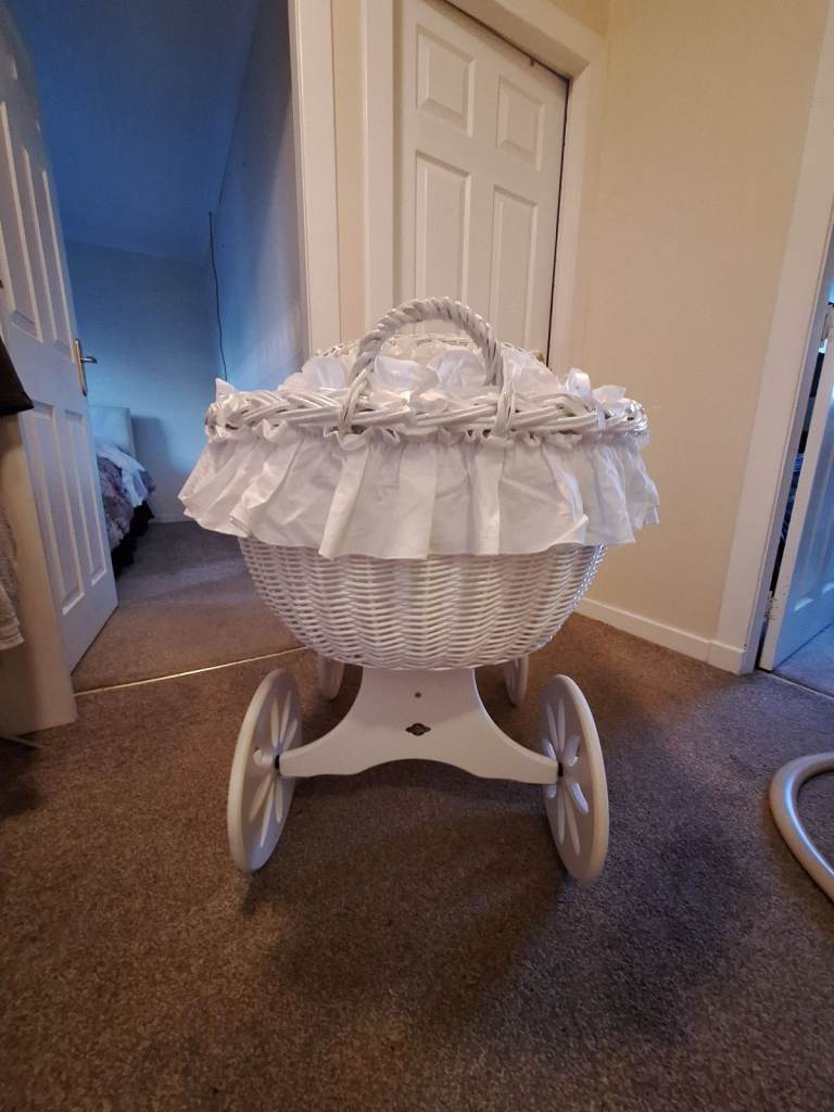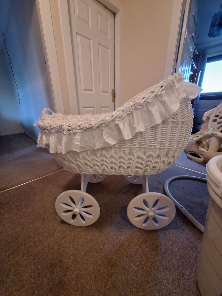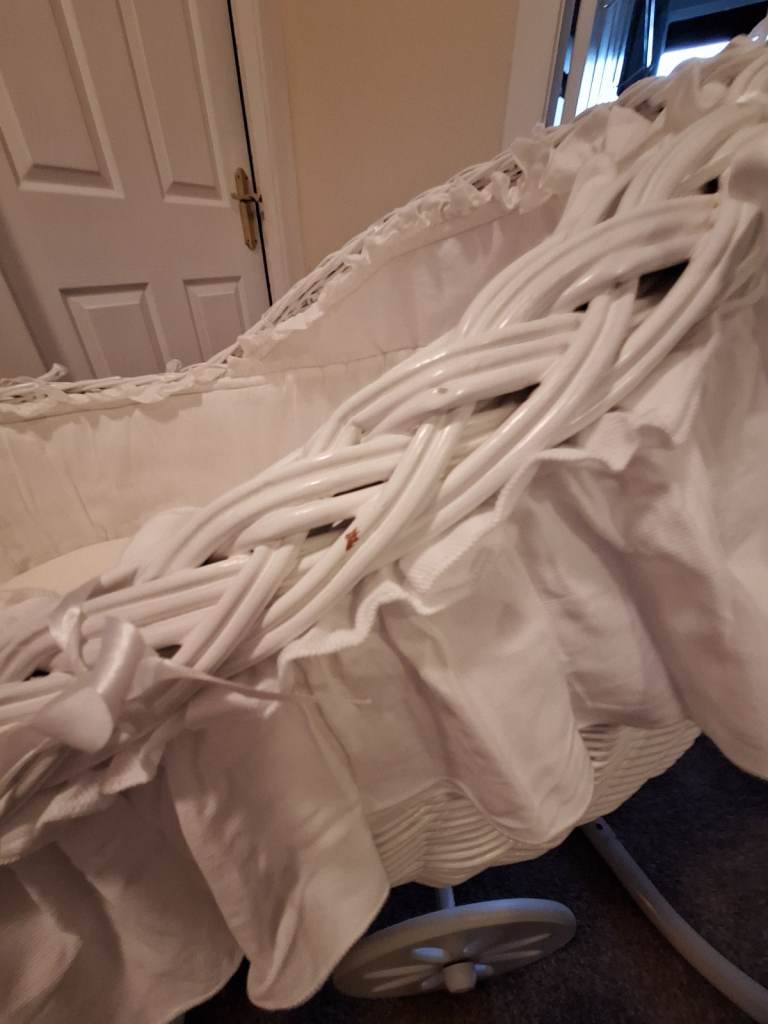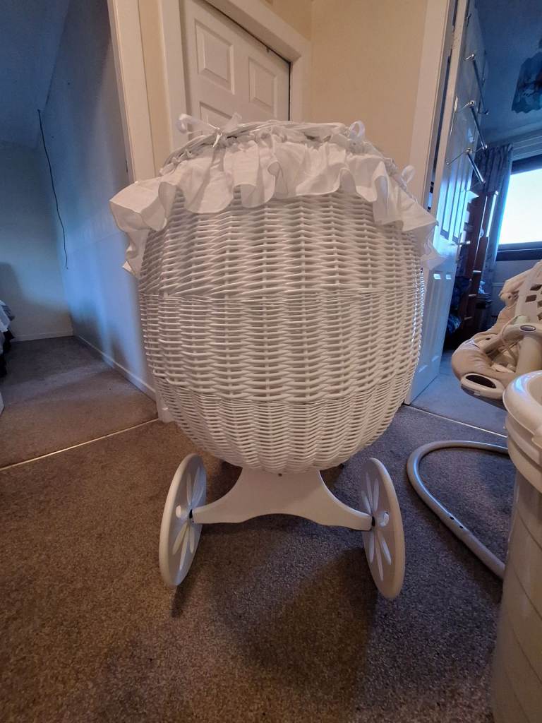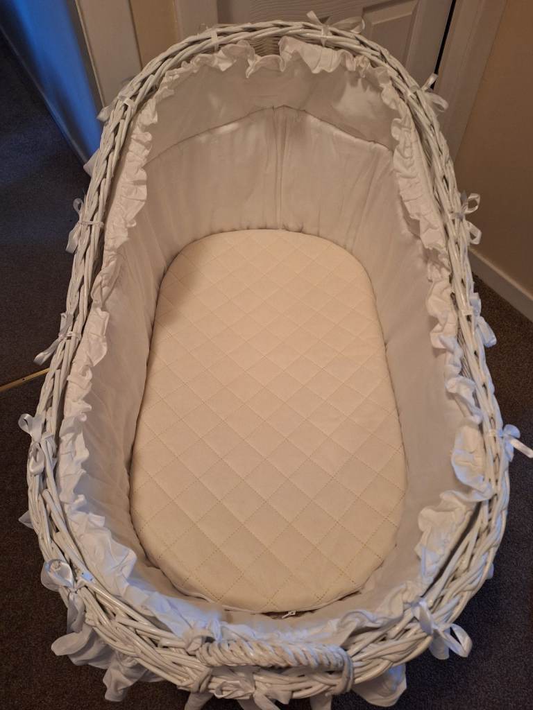 Gorgeous white moses basket come with mattress cover and canopy, in excellent condition other than a couple of wee marks as seen in photos could easily be touched up with white marker or paint collection is north ayrshire dalry looking for £80