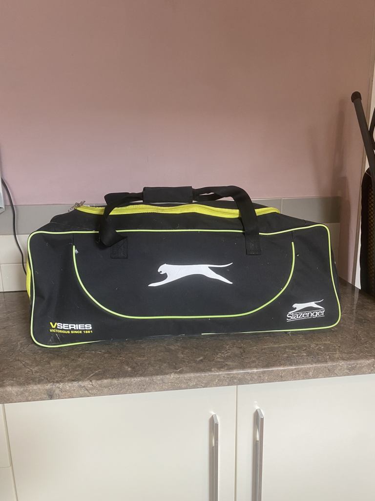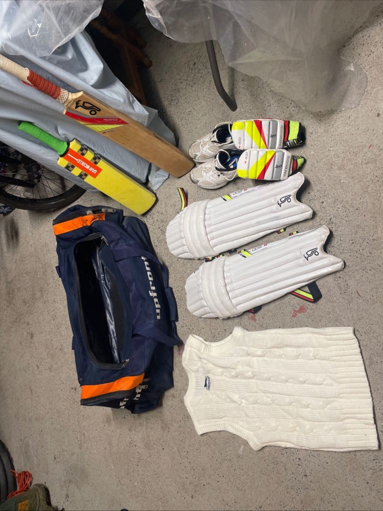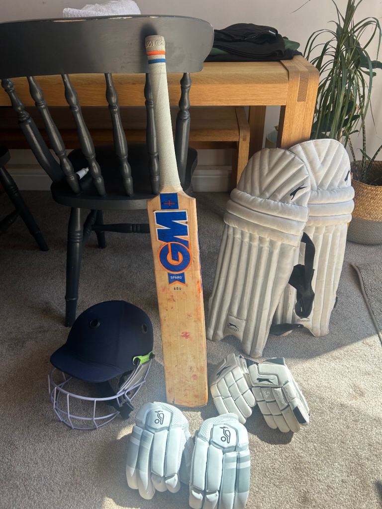 Cricket bag, helmet and full set of pads