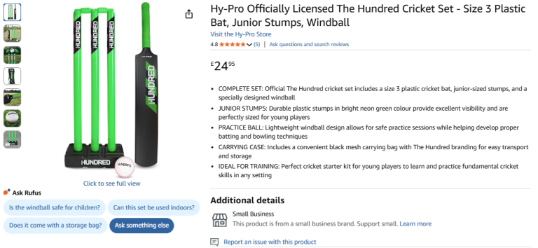 Cricket kit for kids (6 to 12 yr old range size cricket kit)
