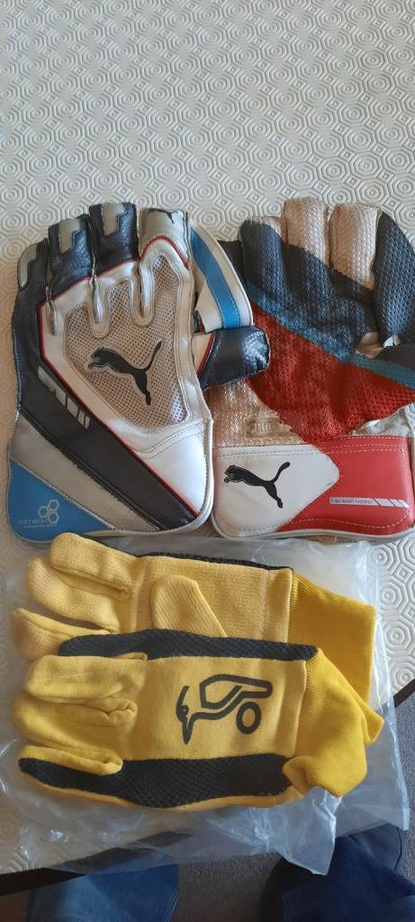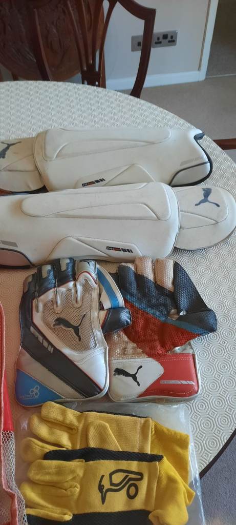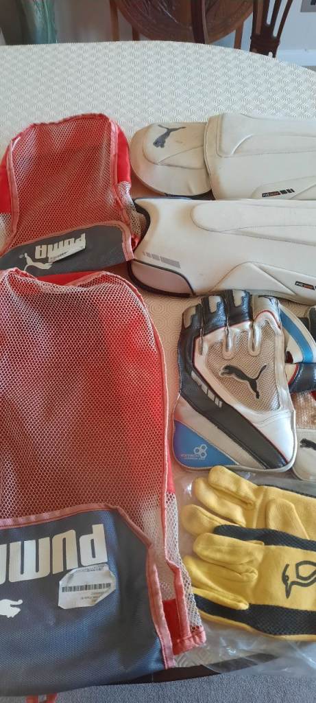 Here we have a set of Puma Wicket Keepers Pads and Puma Gloves, with a set of inner gloves in yellow (Kookaburra) both come with holders for the pads and gloves. £20 cash
