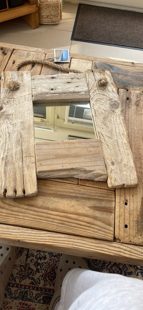 Beautiful handmade driftwood mirror complete with rope for hanging