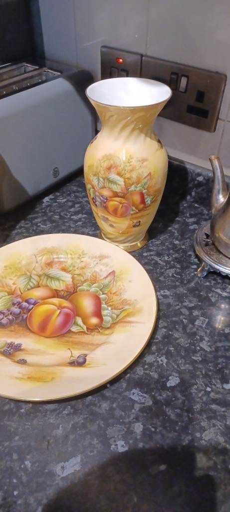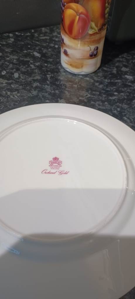 aynsley orchard gold plate and 2 vases