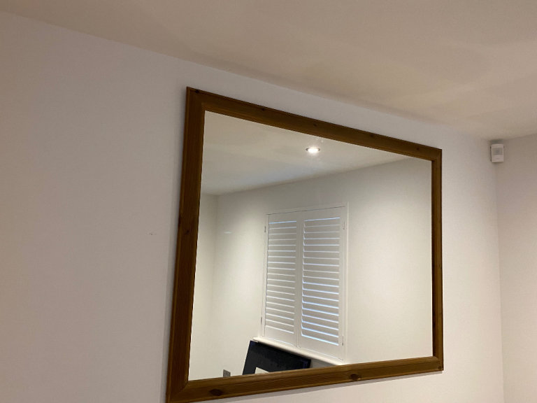 Solid wood. Mirror in good condition - only small blemish on it. In Spare room.