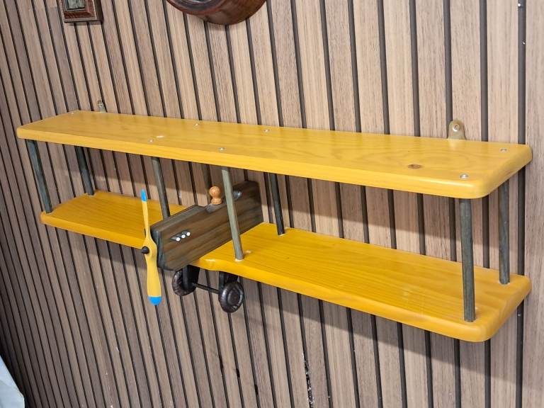 This unique piece of British coin history, features a gold tone frame holding an antique 1932 penny and a vintage 1942 farthing.