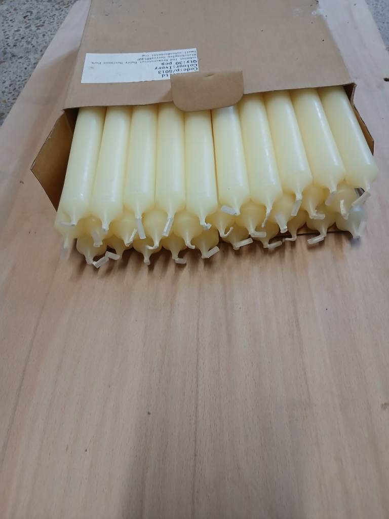 A box of 30 candles , c olour ivory surplus to requirement , length 12 inch
