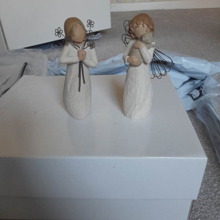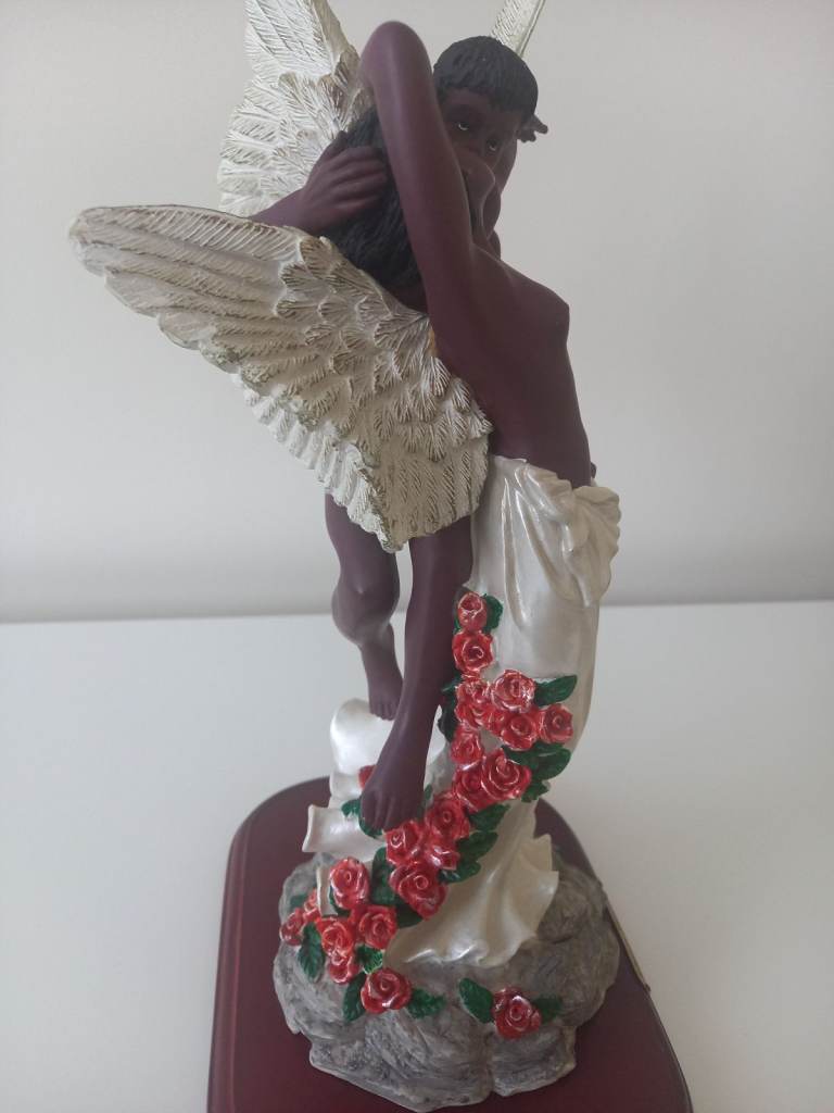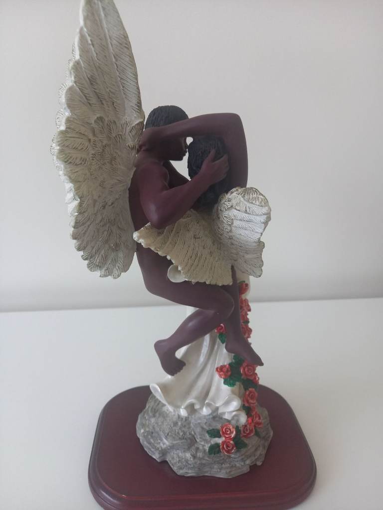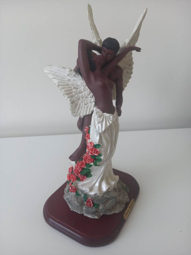 Romantic ornament with angel wings in excellent condition. Figurine endorned with eye catching embroidery. A sophisticated work of art. 30cm high. No scuffs