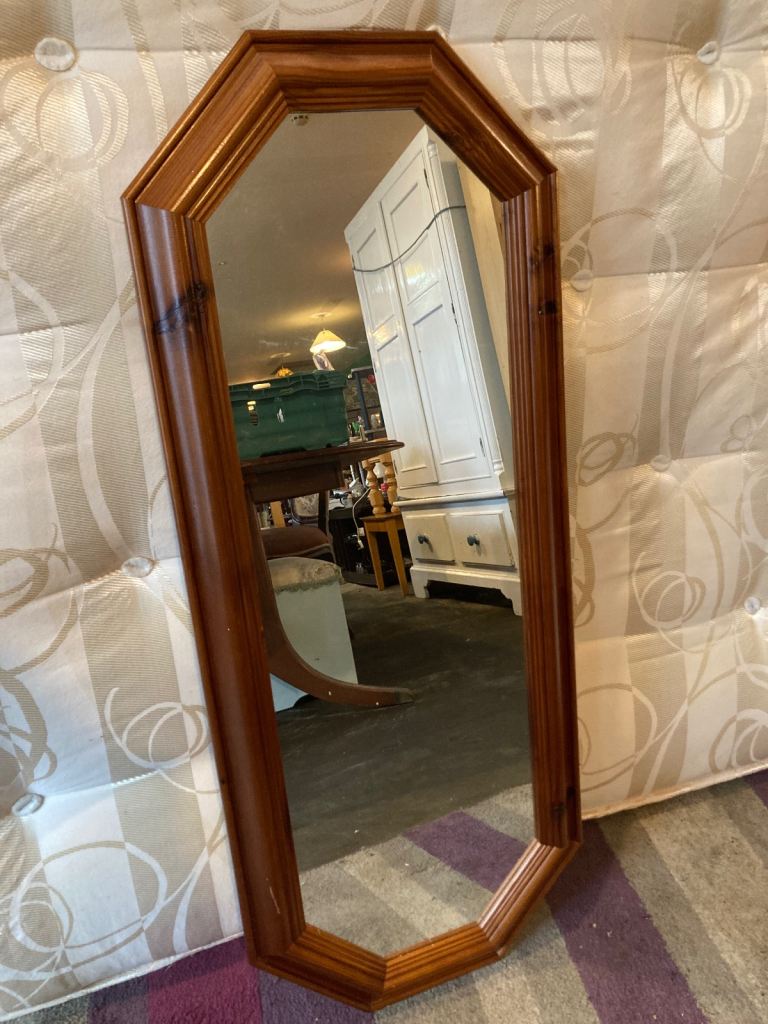 Elegant gold gilt-effect wall mirror with bevelled glass and octagonal corners, perfect above a fireplace, sideboard or in a hallway.