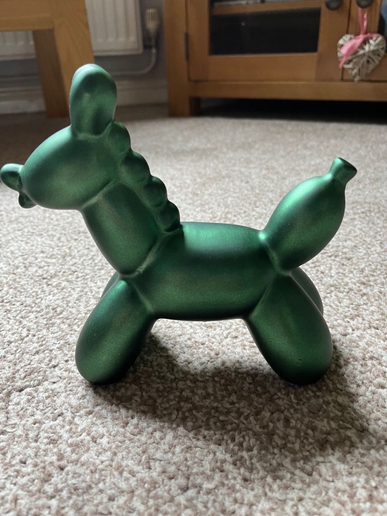 Modern balloon sculpture ornament. Made from ceramic with a Matt metallic coating.