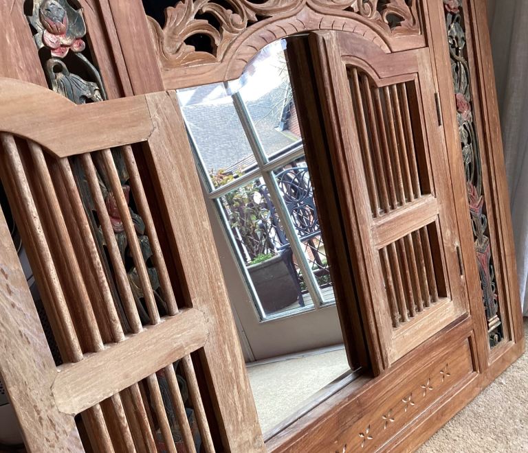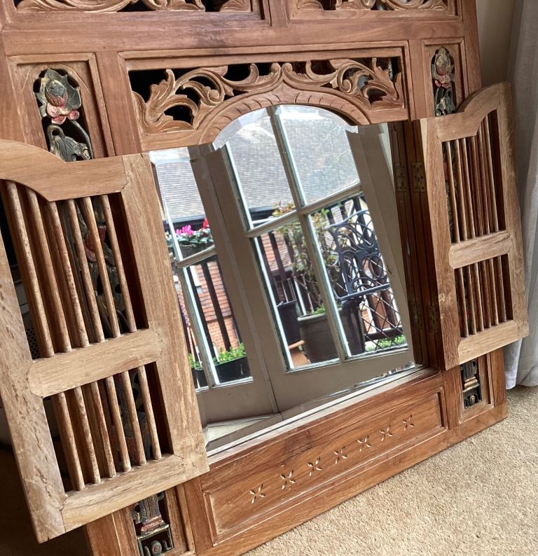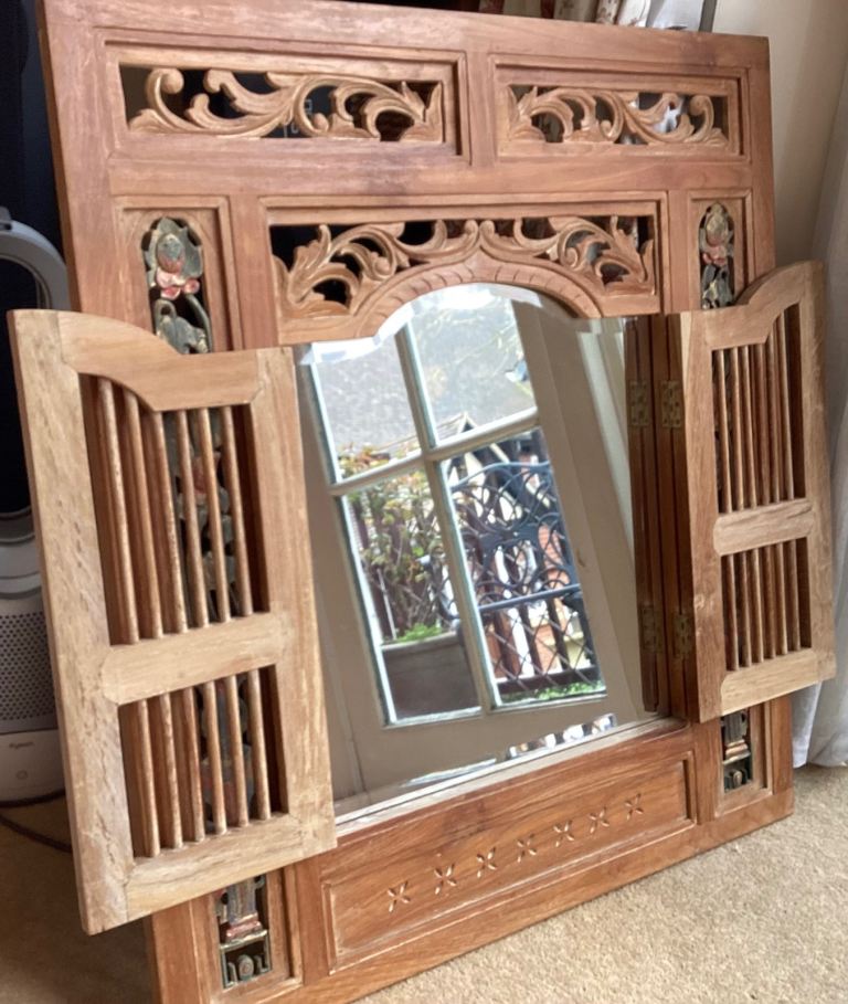 Posting for 7+ monthsINDONESIAN BEVELLED MIRROR SOLID TEAK EXCELLENT QUALITY AND CONDITION