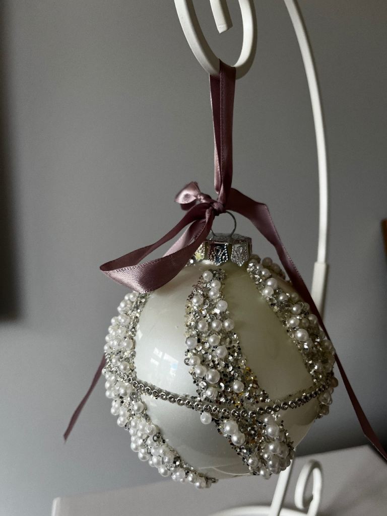 Bauble itself is cream/off-white with a lovely ribbon accent.