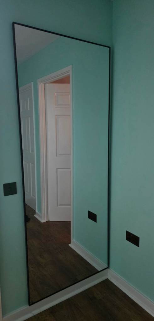 Large Black Thin Framed Wall Mirror 200cm x 80cm. Still like new. Collection Peterborough