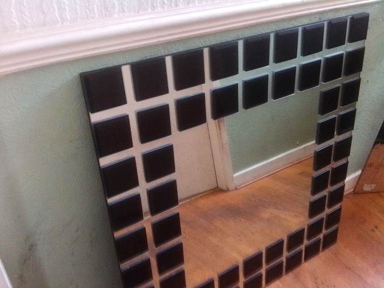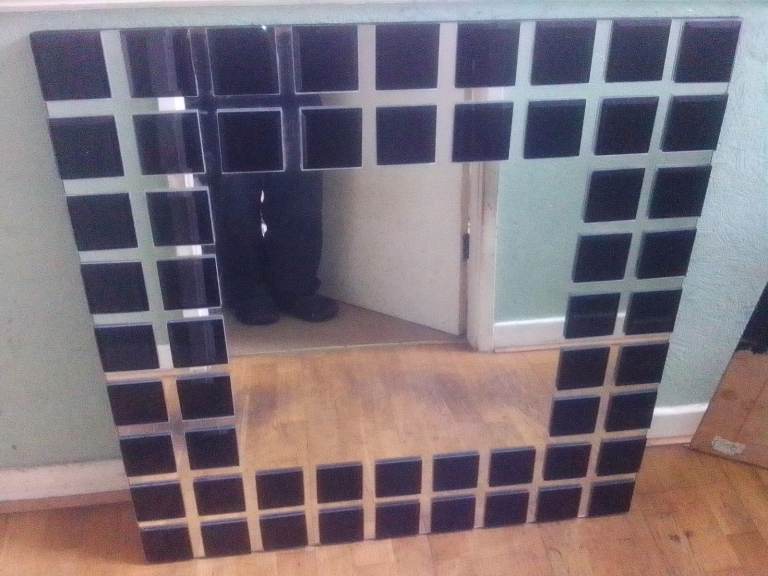 Large mirror 3 foot square black glass tiles around outside