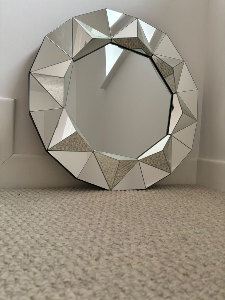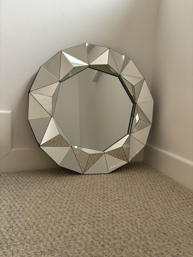 Large modern 3D multi-facet glass mirror, octagon star shape with triangles. Please look at pic’s for the measurements. VGC