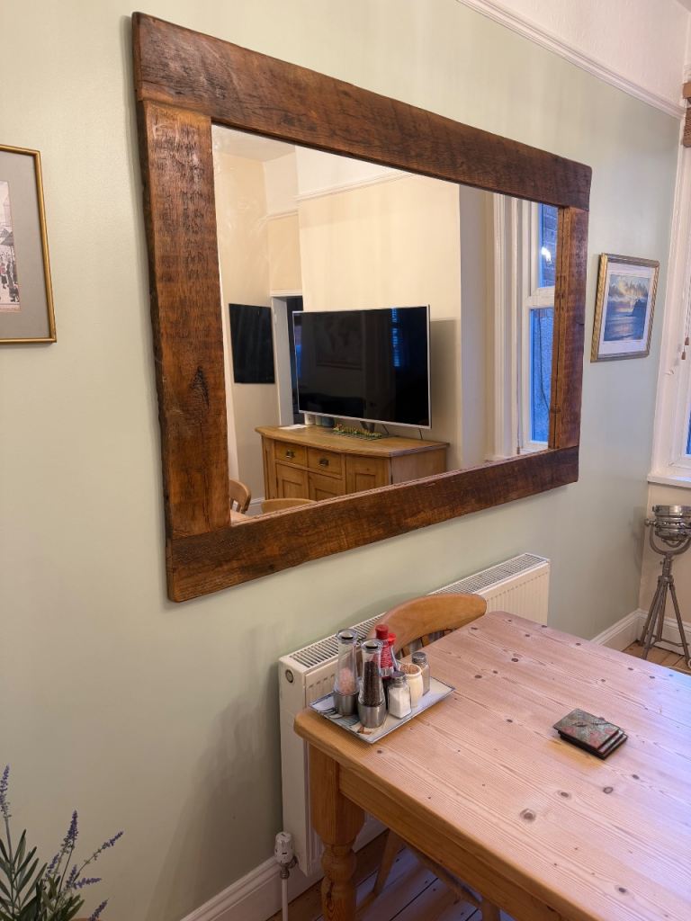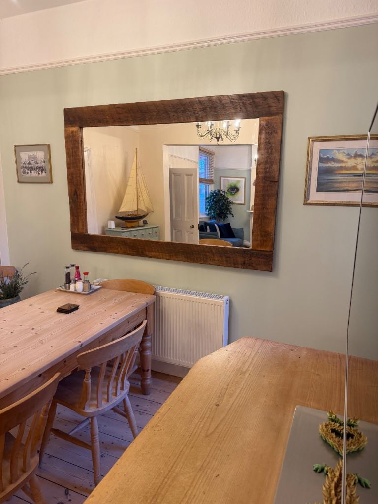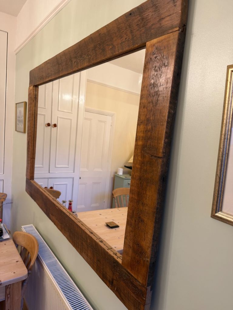 This Large Wooden Framed Wall Mirror is a stylish and versatile addition to any home. The rectangular mirror features a vintage/retro style with a brown frame finish, perfect for adding a touch of nostalgia to any room. Measuring 80 inch’s in length and 40 inches in height, this wall-mounted mirror can be oriented vertically or horizontally to suit your needs. The solid brown colour and mirrored frame material give it a classic and timeless look that is sure to complement any decor. Ideal for adults and suitable for any room in the house, this 21st-century mirror is a practical and decorative piece for your home.