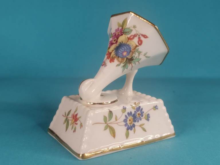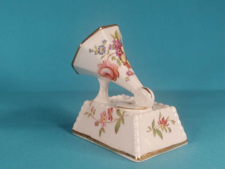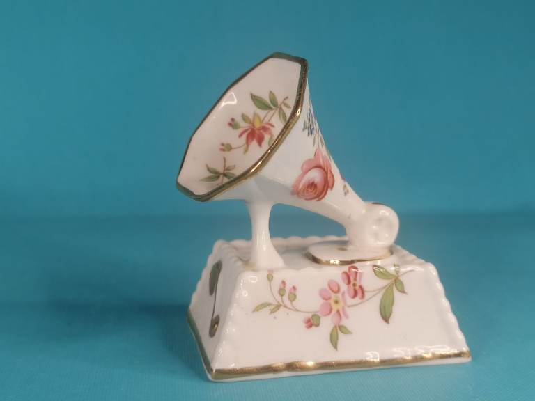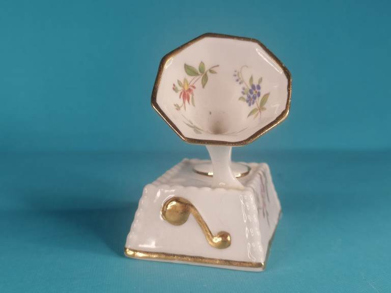 Miniature Bone China Gramophone - Roses Design Hammersley Miniature.